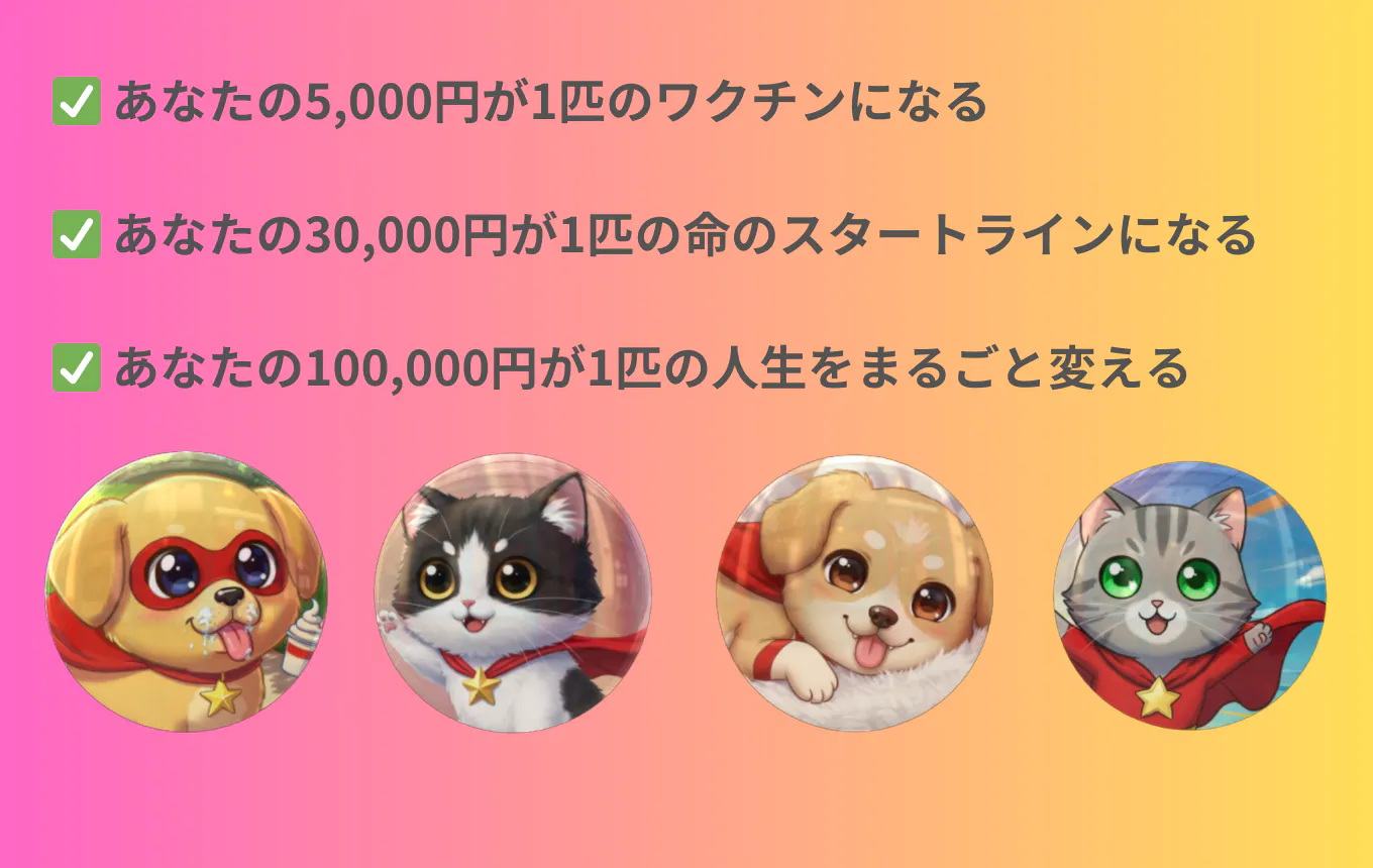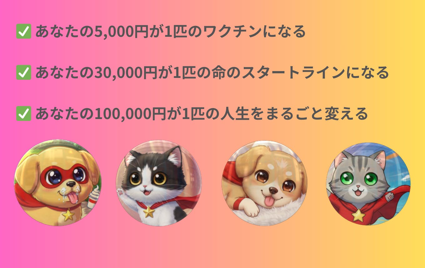 ※このクラウドファンディングを手始めに、今後も特定非営利活動法人ピースウィンズ・ジャパン様(ピースワンコ・ピースニャンコ様)へ継続的な支援を行ってまいります。