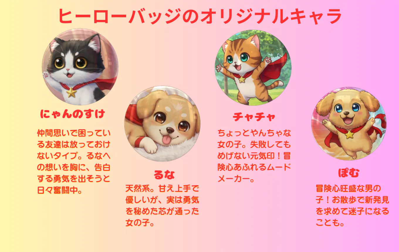 オリジナルキャラのバッジを作成しました。お子様にプレゼントしてあげると喜んでもらえるかもしれません。