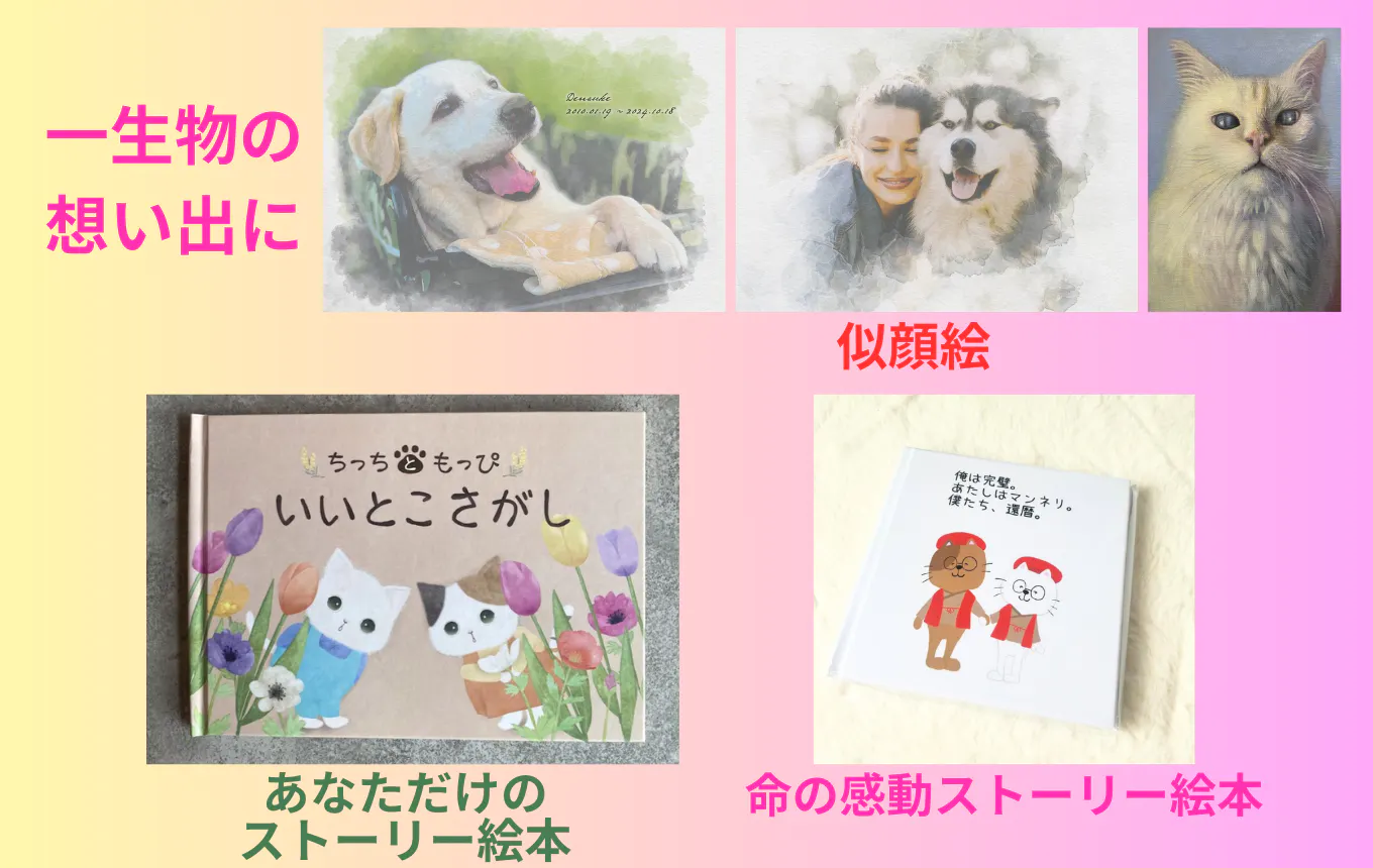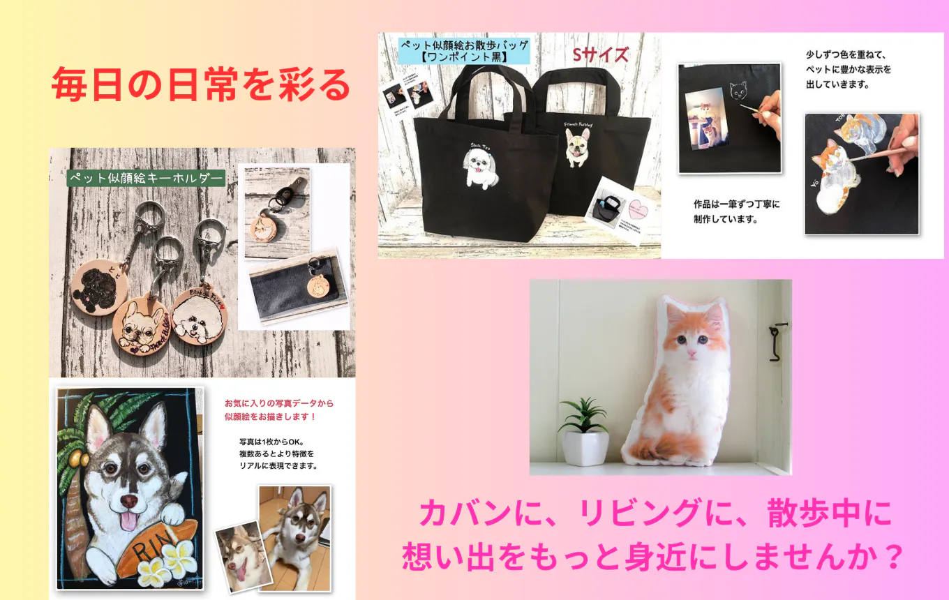 ワンちゃんや猫ちゃんの絵やグッズだけでなく、ご家族や友人へのプレゼントとしても最適です。