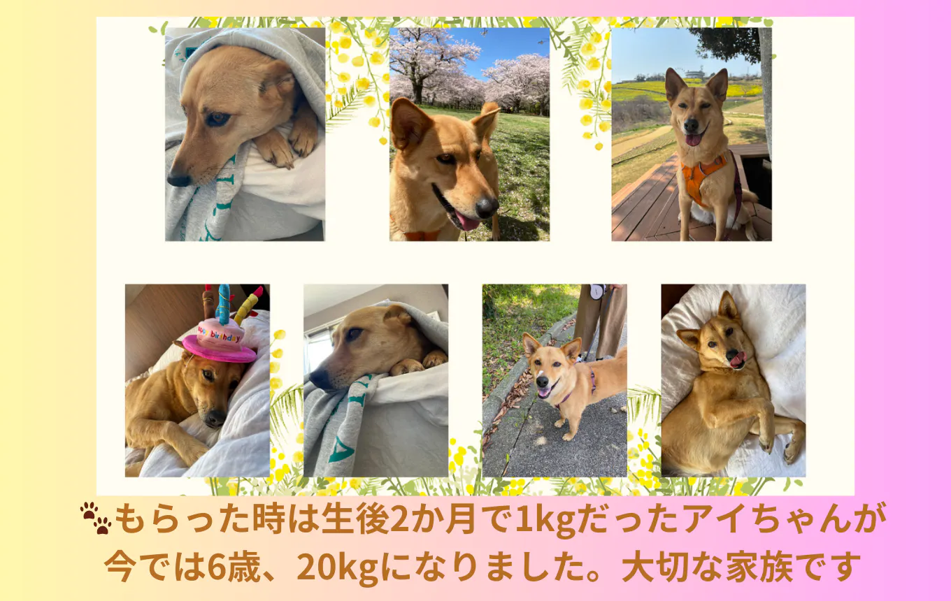 私たちは6年前に保護犬のアイちゃんをもらいました。