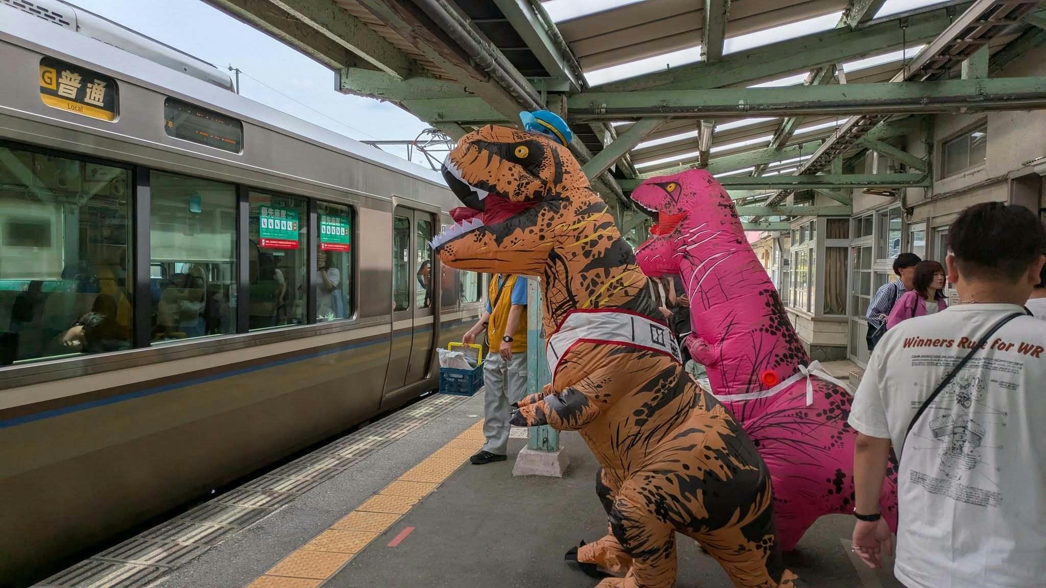駅のホームでは「一日駅長」のティラノサウルスが皆さんをお出迎えし、グルメゾーンをはじめ、音楽ステージやキッズ縁日などをみなさんに楽しんでいただきました。