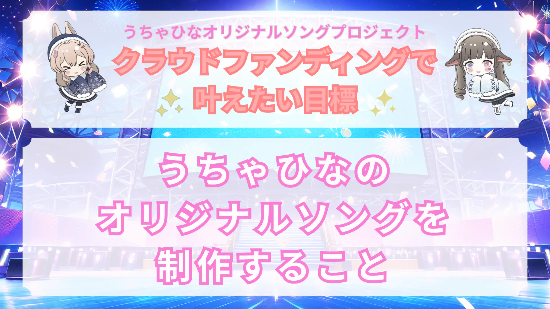 それはうちゃひな二人で『大きなステージに立ち、オリジナルソングを歌う』という夢です。この夢を実現させるために、まず第一歩としてうちゃひなのオリジナルソングを制作したいです。