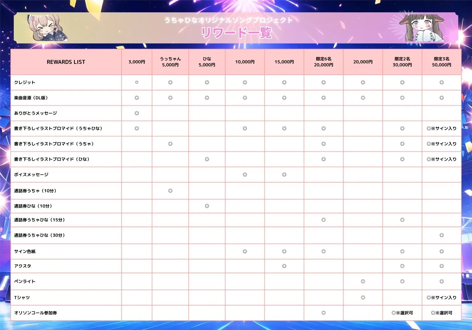 今回のリターンの目玉は、数名限定でうちゃひなのオリジナルソングにコールアンドレスポンスで参加できる権利です!