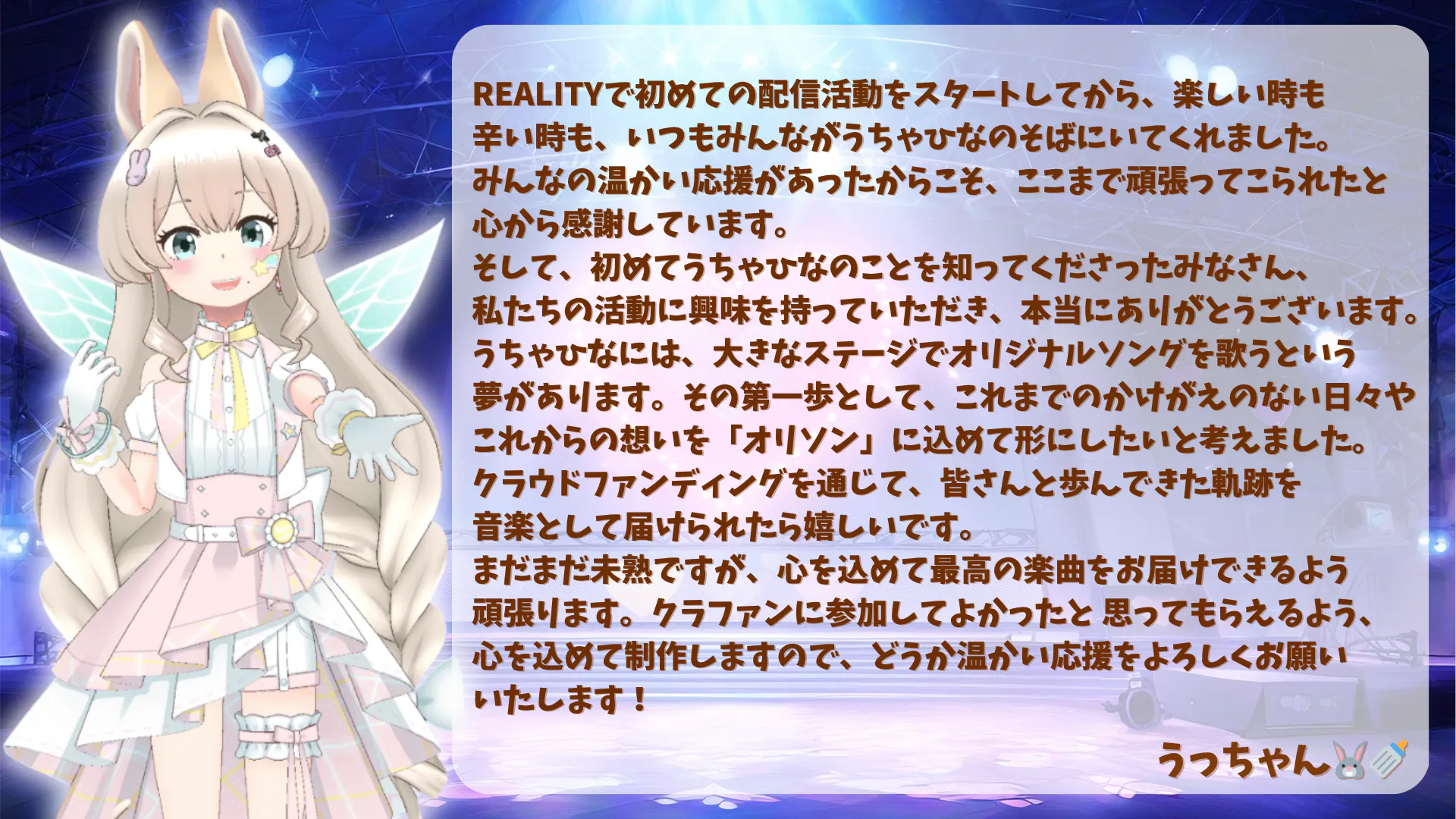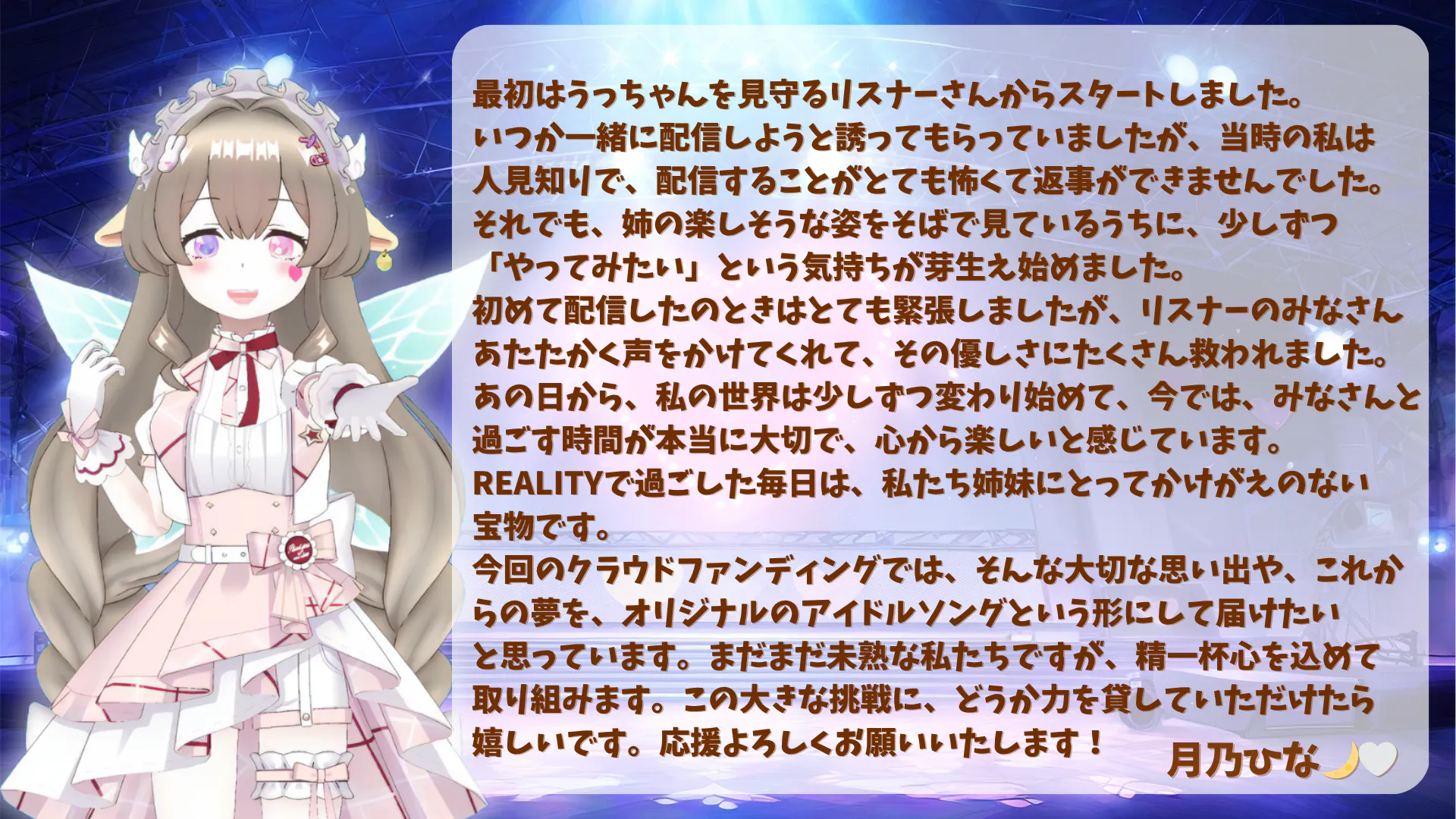 REALITYで配信活動を始めてうっちゃんは2年、ひなは1年半が経ち、二人の大きな夢ができました。