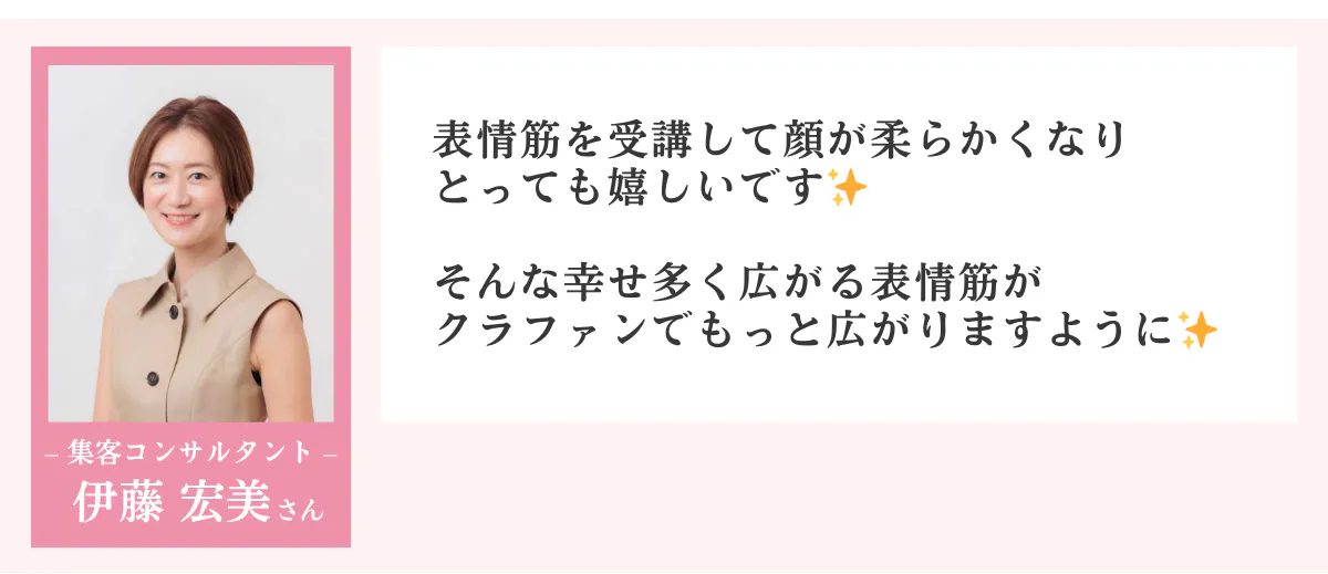 だからこそ、私はこの表情筋トレーニングをもっと多くの人に届けたい。たくさんの方が一歩を踏み出し、人生を大きく変えるきっかけになって欲しいと思っています。