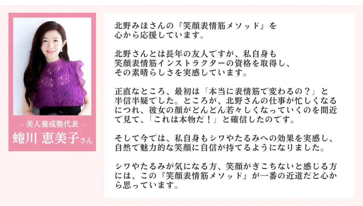 表情筋は嘘をつきません。行動した分だけ、必ず素敵な笑顔は手に入ります。