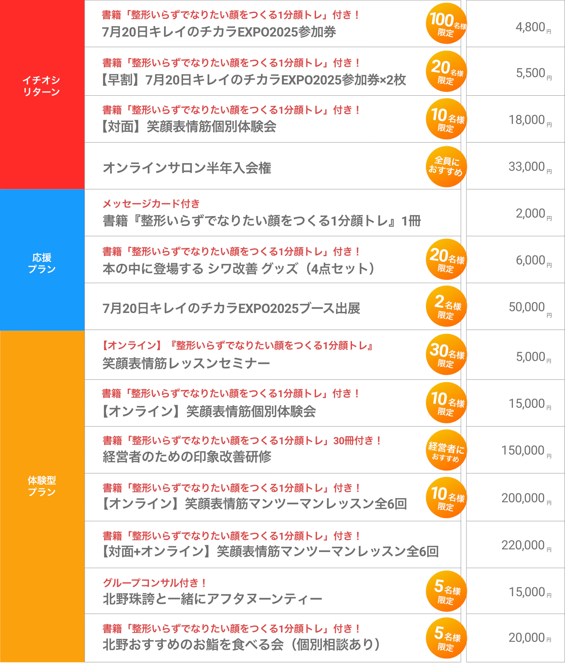 2025/07/01 12:546月26日に発売された書籍『整形いらずでなりたい顔をつくる 1分顔トレ』をきっかけにスタートしたクラウドファンディング。ついに、先日クラウドファンディングが終了いたしました。最終的には、なんと…目標達成率200%超え!たくさんのご支援を本当に本当にありがとうございました。「1日1分で、笑顔美人に。」魅力的な笑顔をつくる表情筋トレーニングで『なりたい私』を応援したい──そんな想いで始めた挑戦でしたが、たくさんの方にご支援をいただき、このメソッドをもっと多くの方へ届けるための大きな一歩となりました。応援してくださった皆さまのおかげで3000人以上の笑顔を変えてきたこのメソッドを、全国へ、世界へ、さらに広げていけそうです。・書籍を手にとってくださった方・オリジナルグッズを応援購入してくださった方・SNSでシェア・応援してくださった方すべての皆さまに、心からの感謝を込めて…本当にありがとうございました!これからも「整形いらずで、自分らしい美しさを手に入れる」表情筋メソッドの可能性を、もっと広げていきます。今後の活動も、ぜひ見守っていただけたら嬉しいです。笑顔表情筋®協会 代表北野 珠誇 もっと見る