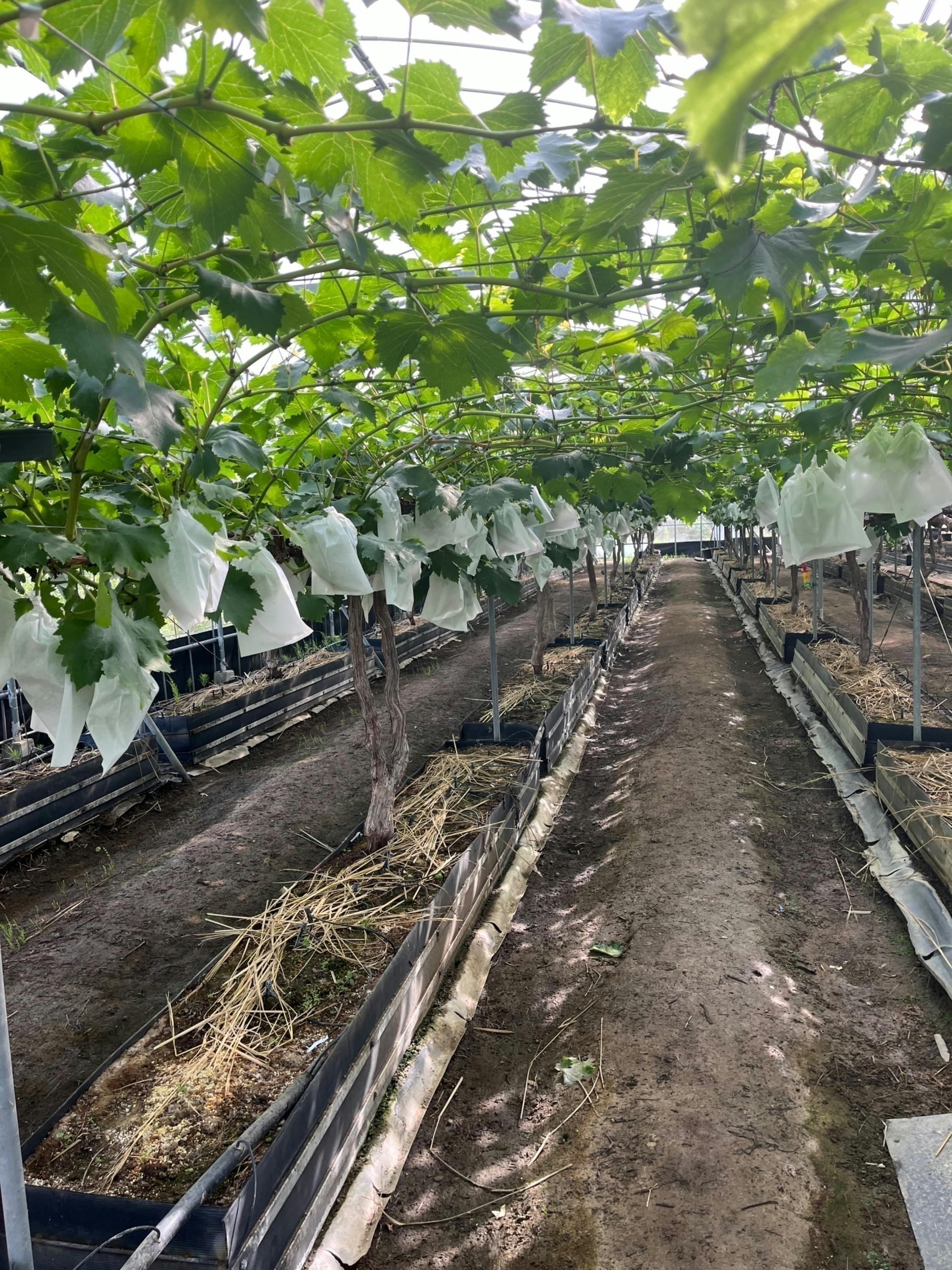 根の生育を制限すると育ちが悪くなるのでは?と思われるかもしれませんが、根の生育を適正に管理することで、木が吸う水の量や木の大きさ、果実の大きさも安定して管理できるようになり、どの木に実ったぶどうも安定しておいしく、同じ品質で出荷できるようになるのです。