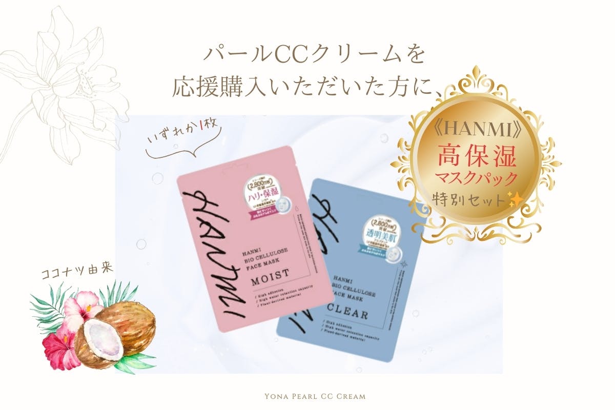 CAMPFIREのサイトでパールCCクリームを応援購入をいただきました方 全員になんと、、、ぷるぷるゲルマスクで人気のHANMI (ハンミ)のマスクパック(通常 1枚 350円)を付けて同じ価格でご提供します!!