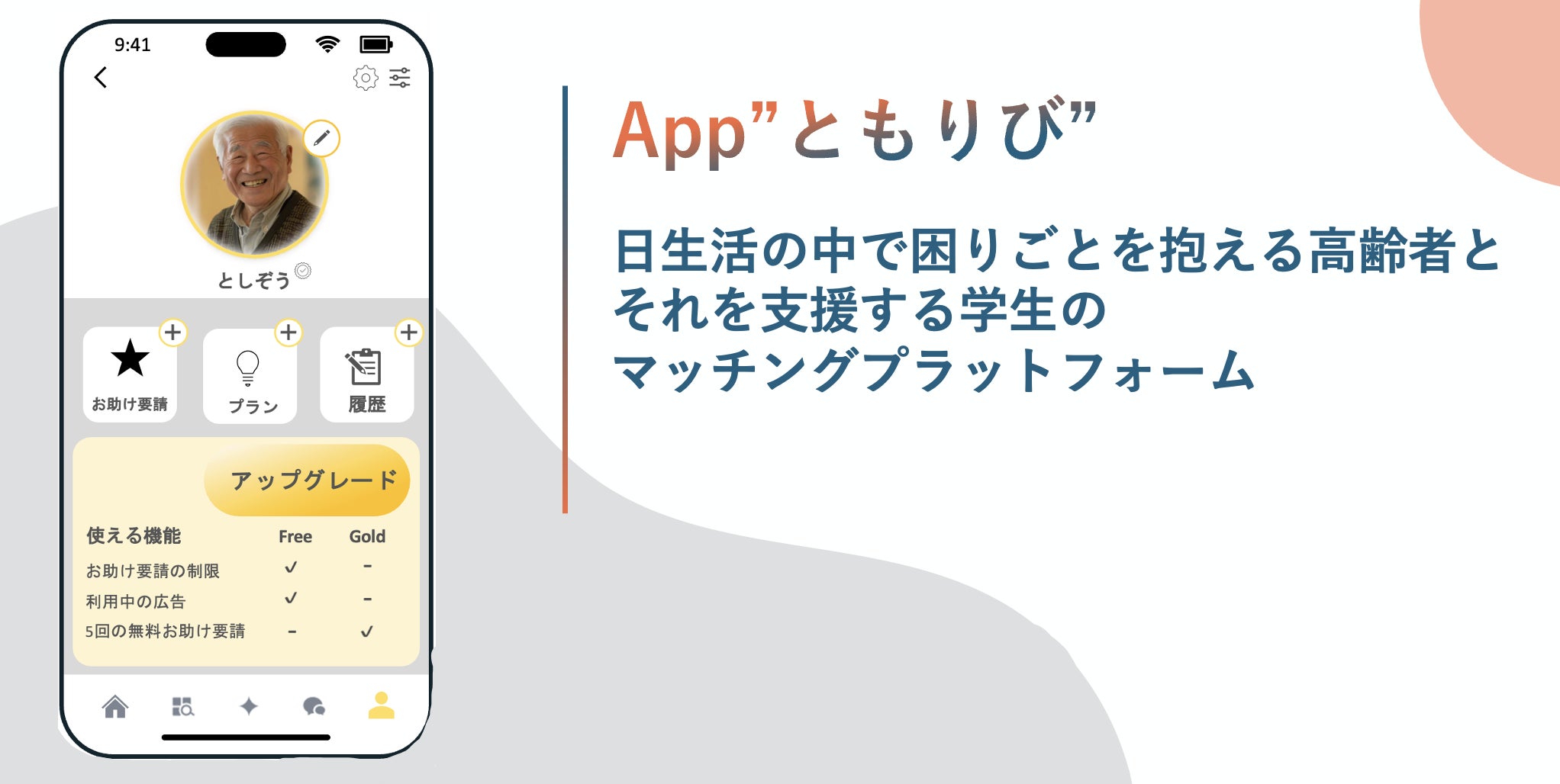 アプリ「ともりび」は、日常生活の中で困りごとを抱える高齢者と、