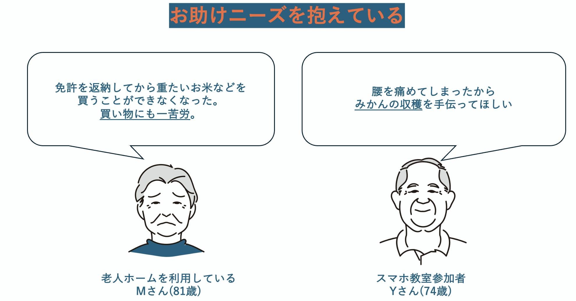 特に単身で暮らす高齢者の方々の中には、免許返納後に重たい米などの買い物が困難になったり、農作業の人手が足りないなどと、日常の中にさまざまな学生でも対応できる“お助け”ニーズを抱えています。