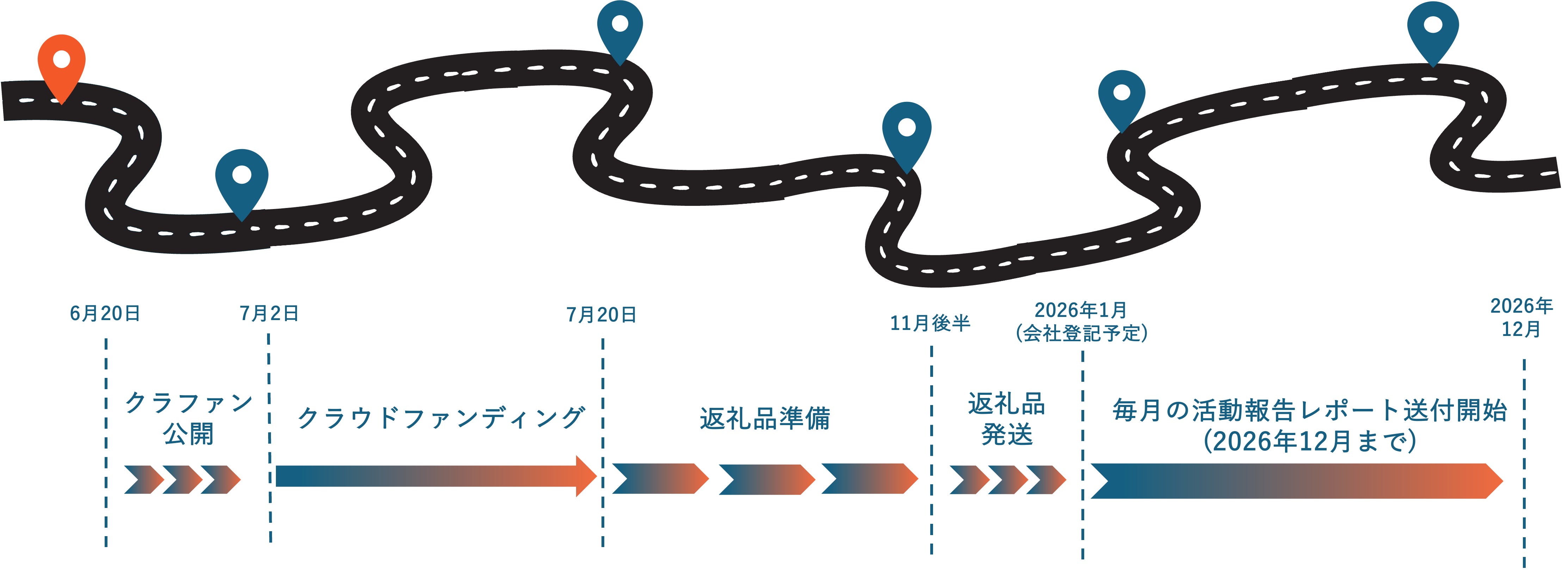私たちのクラウドファンディングは、以下のスケジュールで進行します。