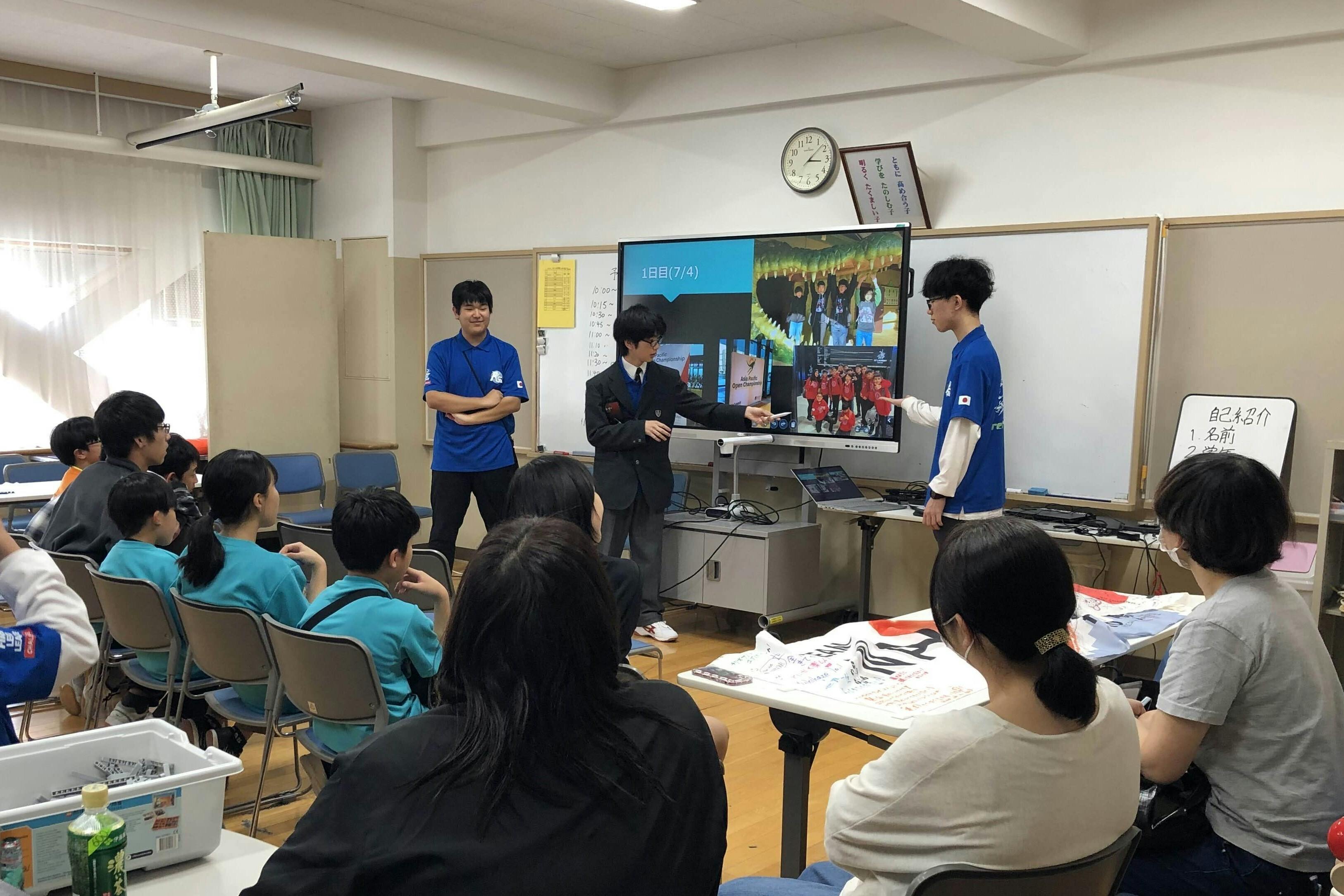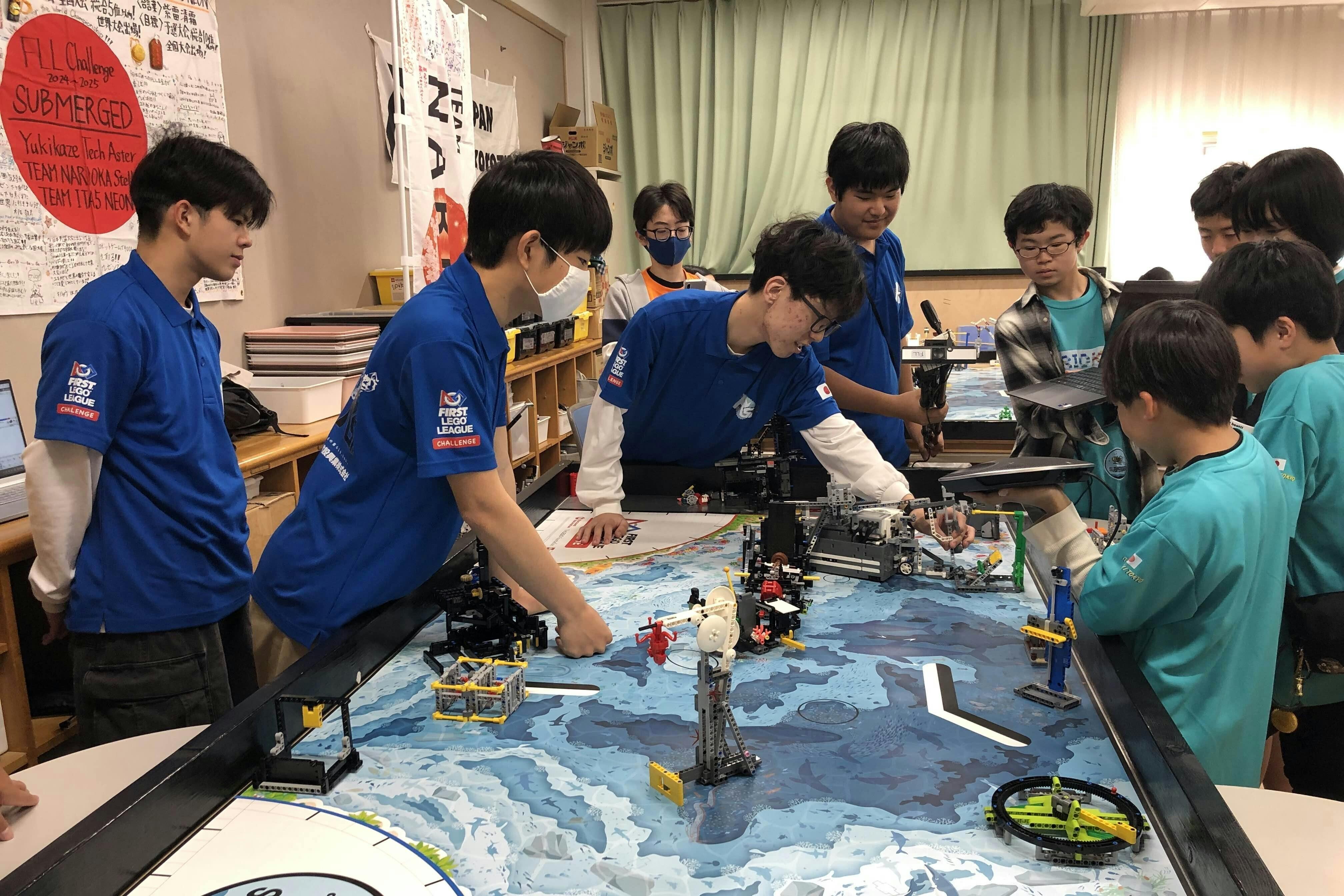 午前の交流会では、全国大会での発表内容、世界大会に向けての進捗や展望を共有し、午後はロボットやイノベーションプロジェクトについて、それぞれが教え合ったり議論をしたりしました。