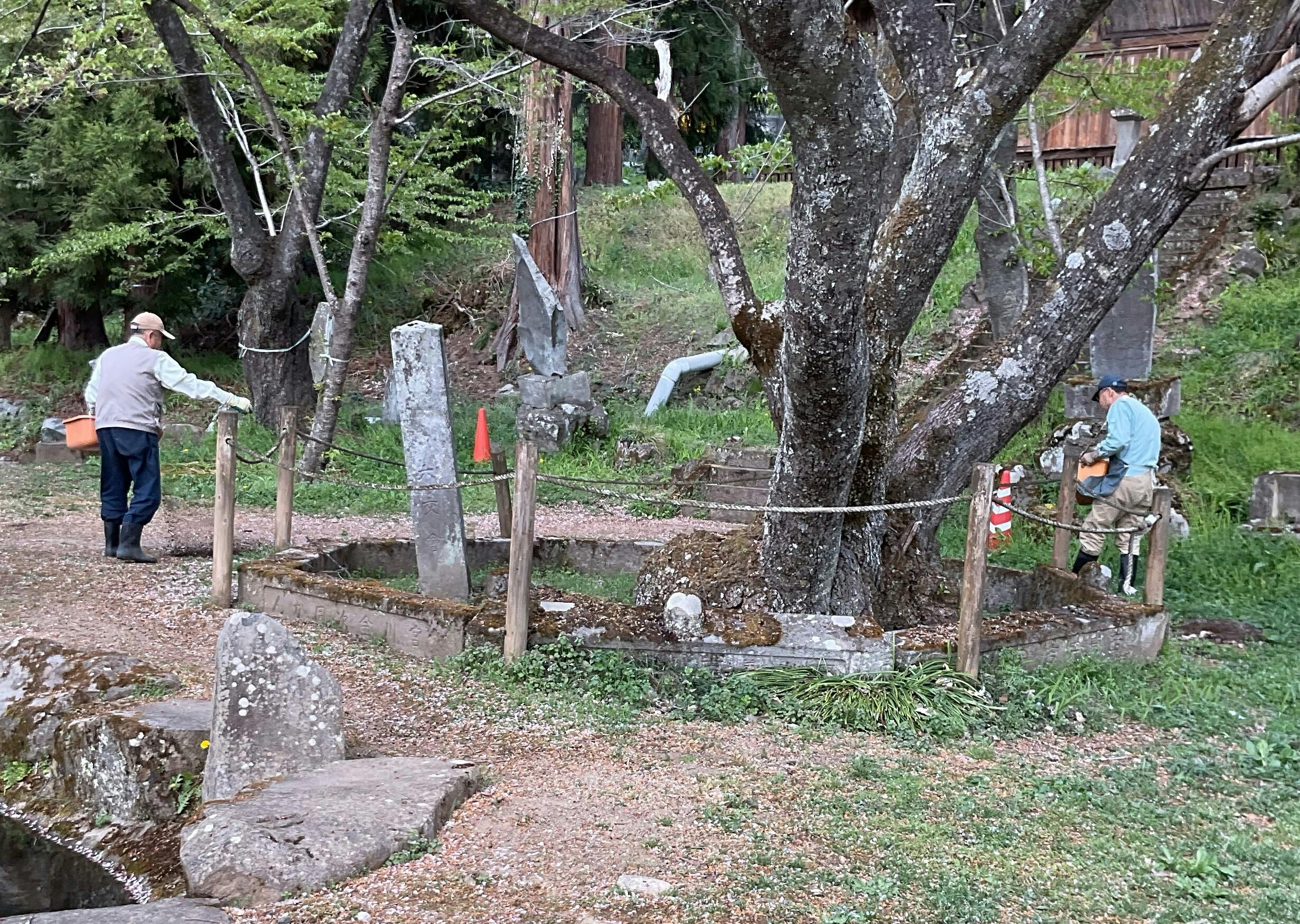 私達有志はこれまで決してこの状態を放置していた訳ではなく、「弘法桜」を守る為に、草取りや枯れ枝の処置等、我々の出来る限りのことは実施してきました。ただここ数年、各種病害虫に侵され急激に「弘法桜」の樹勢が低下して来てしまっていることに大きな危機感を覚えています。このままでは、1200年続いた命が尽きてしまうとの思いから樹木医の診断を受けたところ、今なら適切な処置をすれば何とか間に合い、樹勢を回復できるとの最後の希望を頂きました。裏を返せば、この数年が限界で、このまま放置を続ければ最悪の状態になるとの宣告でもありました。