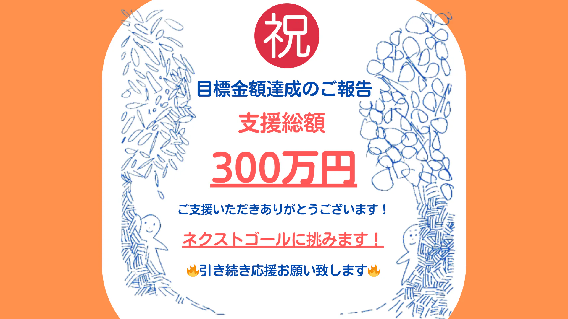 皆さまのおかげで、230名を超えるサポーターの皆さまとともに、第一目標の300万円を無事に達成できました。心から感謝申し上げます。