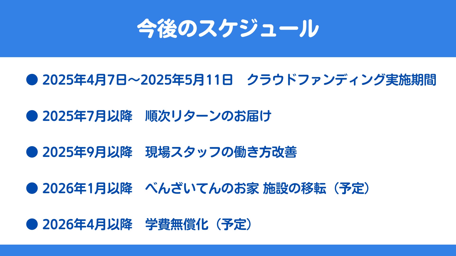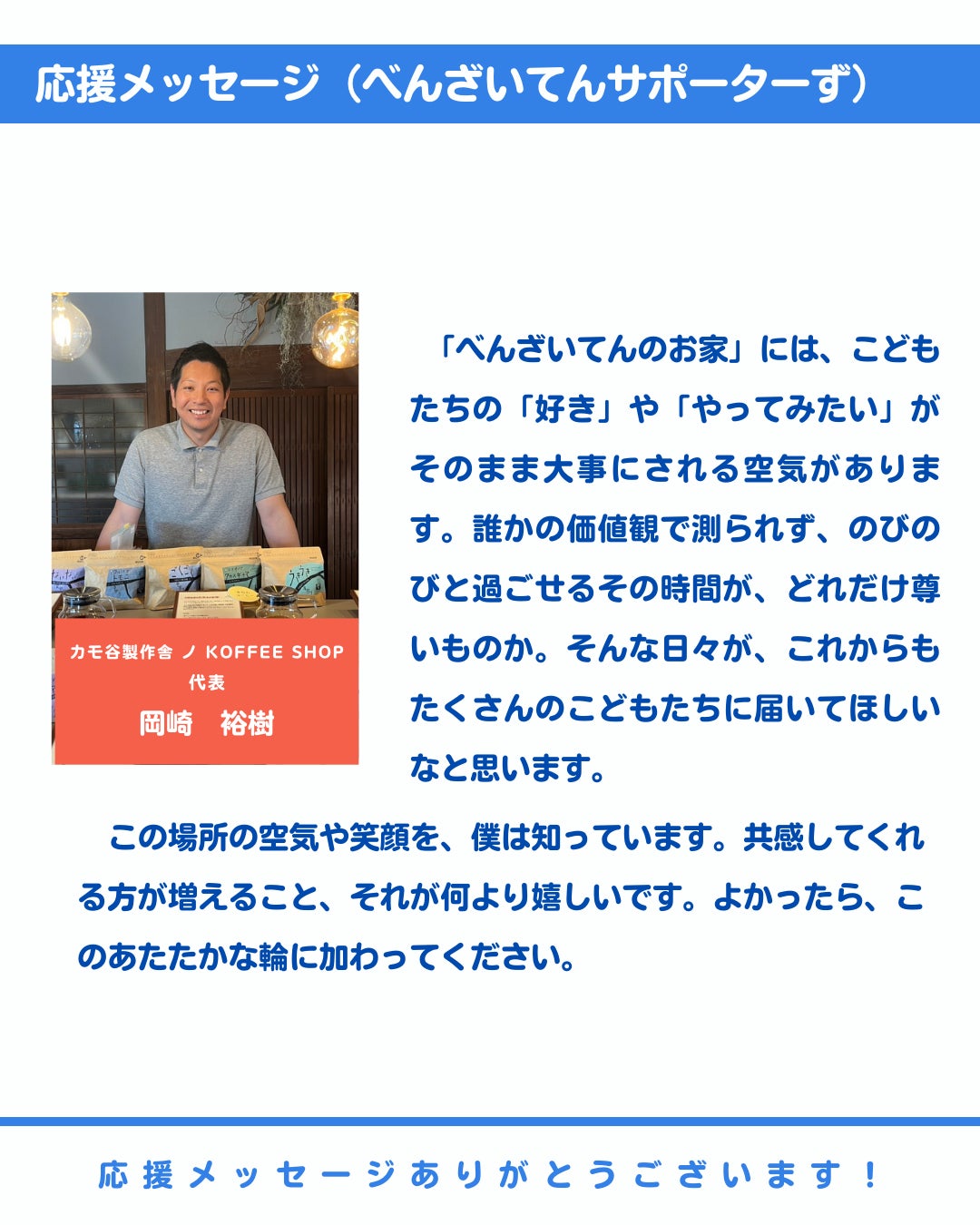 今日は私が運営する『べんざいてんのお家』の学校の継続のために、みなさんのお力を借りたいです。