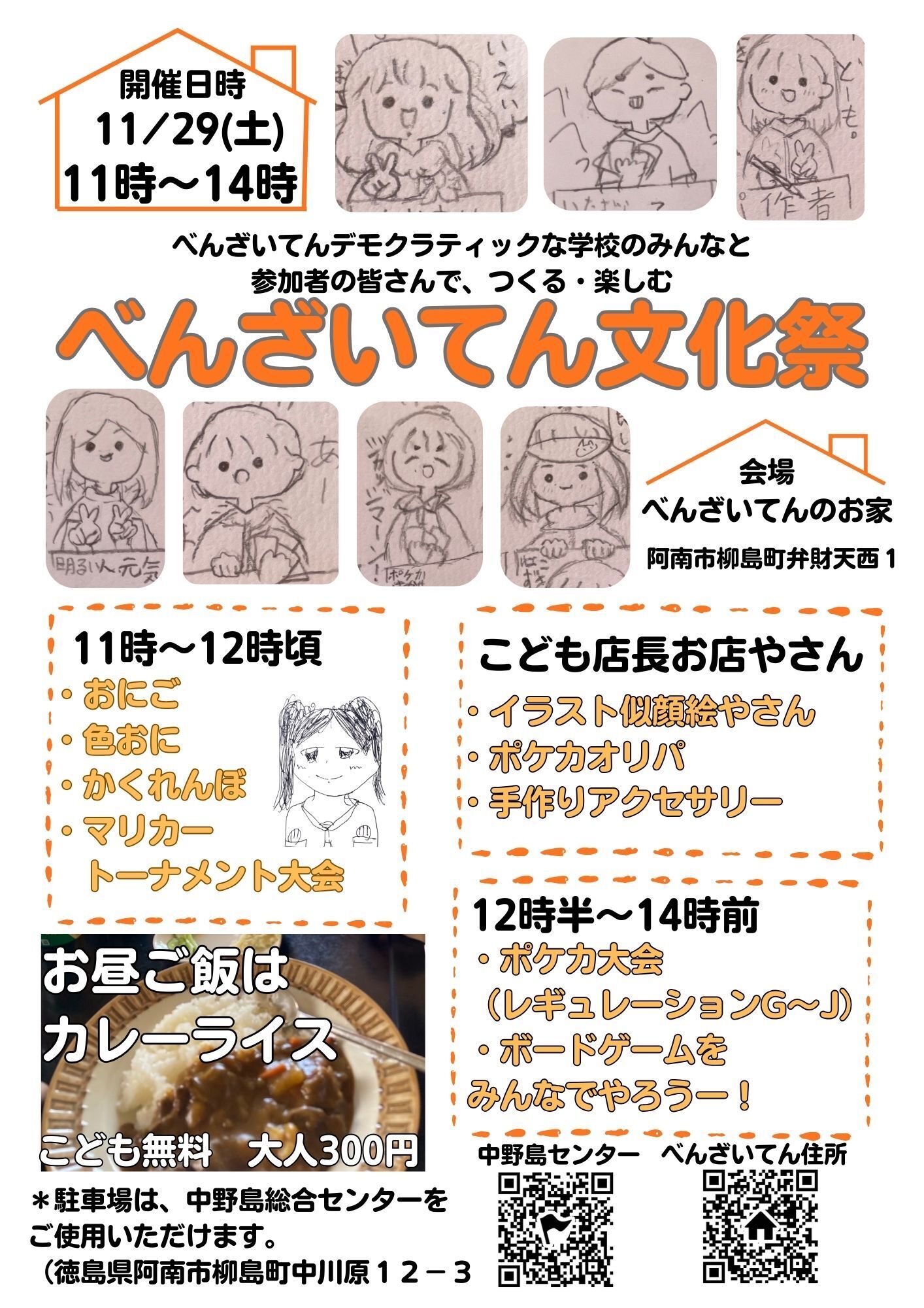 2025/11/27 15:24ご支援いただいた皆様、お世話になっております。5月に活動報告をしたっきりになっており、大変申し訳ありませんでした。目の前のことで、手一杯となっており報告まで行き届いておりませんでした。今月より、活動報告を行えるように整えられましたので定期的にお知らせさせていただきます。今月は「こどもたちがやってみたい!」の声を実現できるためにスタッフで日程調整をした文化祭が開催されます。11月29日(土)11時から14時までとなります。文化祭を経験したことがないこどもたちの作る文化祭はスタッフとしても、興味津々と不安が入り混じっています。大人の思う文化祭にイメージよりもこどもたちの中にある日常の少し延長線である文化祭イメージを尊重して、そこへ伴走しています。ついつい、飾り付けは?看板は?などと声をかけてしまいそうになります。その気持ちは、スタッフとしての焦りや人の目を気にしてやいないか?とスタッフ同士で確認しあって、今日までやってきました。ーーーーーーーーーーーーーーー⌚︎べんざいてん文化祭スケジュール✏︎11/29(土)11時から14時場所:べんざいてんのお家(阿南市柳島町弁財天西)駐車場は中野島総合センターの芝生ゾーンにお願いします。(阿南市柳島町中川原12−3)べんざいてんより徒歩5分以内です。こどもお店屋さん・手作りアクセサリー屋さん(50円から200円でストローつけ爪、ブレスレットやネックレスの販売)・その場で描きます似顔絵さん(あなたを可愛いイラストで描きます」・ポケカオリパやさん(完成デッキは数千円ですが、100円からのカード販売もあります)お昼ご飯は、こども食堂みんな食堂カレーライスをいただきましょう〜!こども無料、大人300円です【午前の部】外遊びを来場者のみなさんとやりたい!おにご、かくれんぼ、いろおに など【午後の部】ポケカ公式ルールで対戦会(景品はありませんが、ポケカの経験値を積みまくって見ませんか?べんざいてんに通うこどもさんでポケカをとことんやりこんでいる子がいます)・ボドゲをみんなでやろうー!(ナンジャモ、ペンギンパーティ、犯人は踊る…カードゲームも様々あり、ボドゲもカタン、人生ゲームなどがあります!)13時55分からべんざいてん大人コーラス部の歌披露タイム14時 終わりーーーーーーーーーーーーーーーご都合合えばぜひお越しください♪ もっと見る【5月の活動】小さなちいさな世界をつくろう