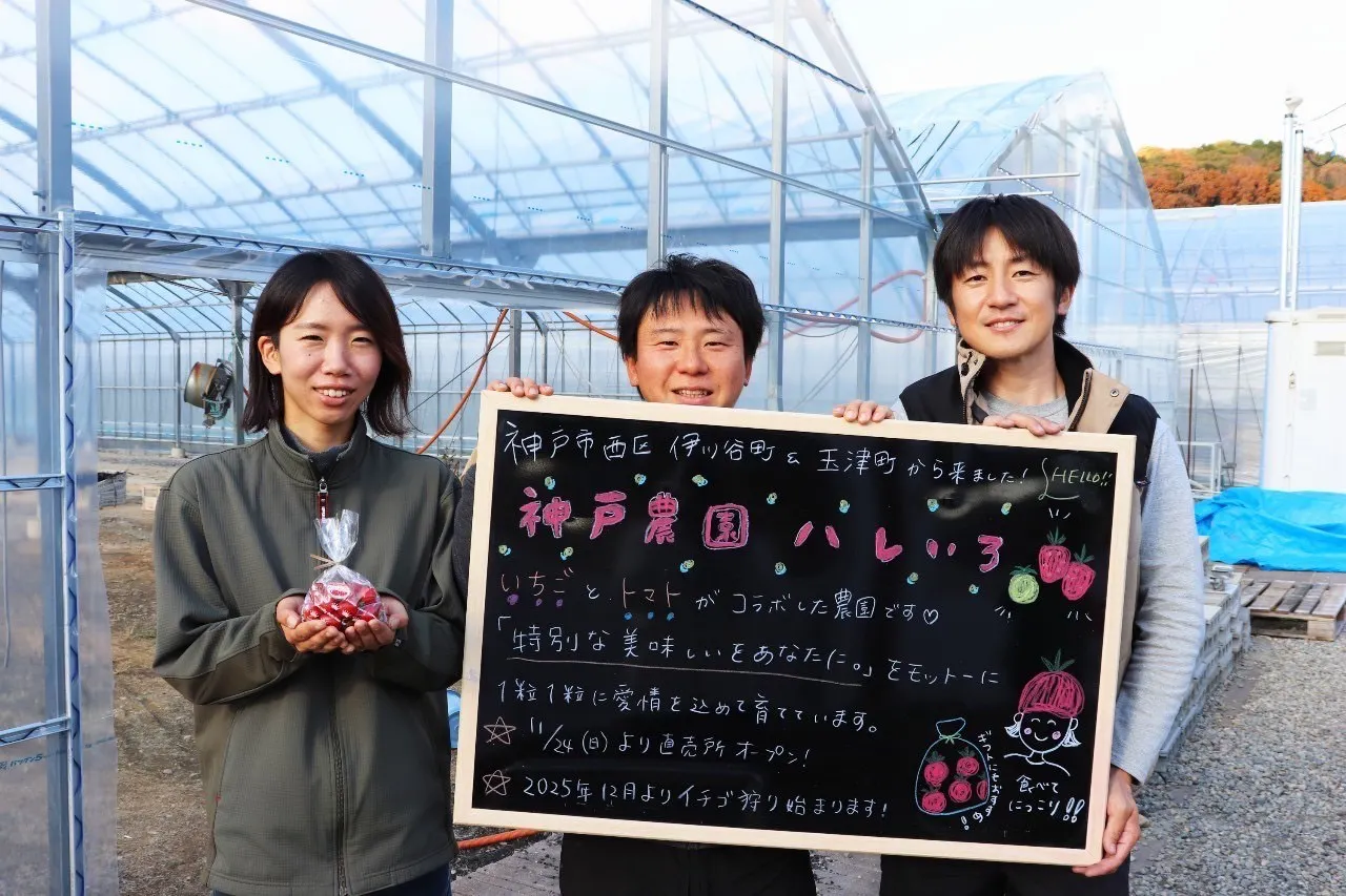 「ハレいろ」は神戸市西区にある、いちごとトマトのコラボ農園です。