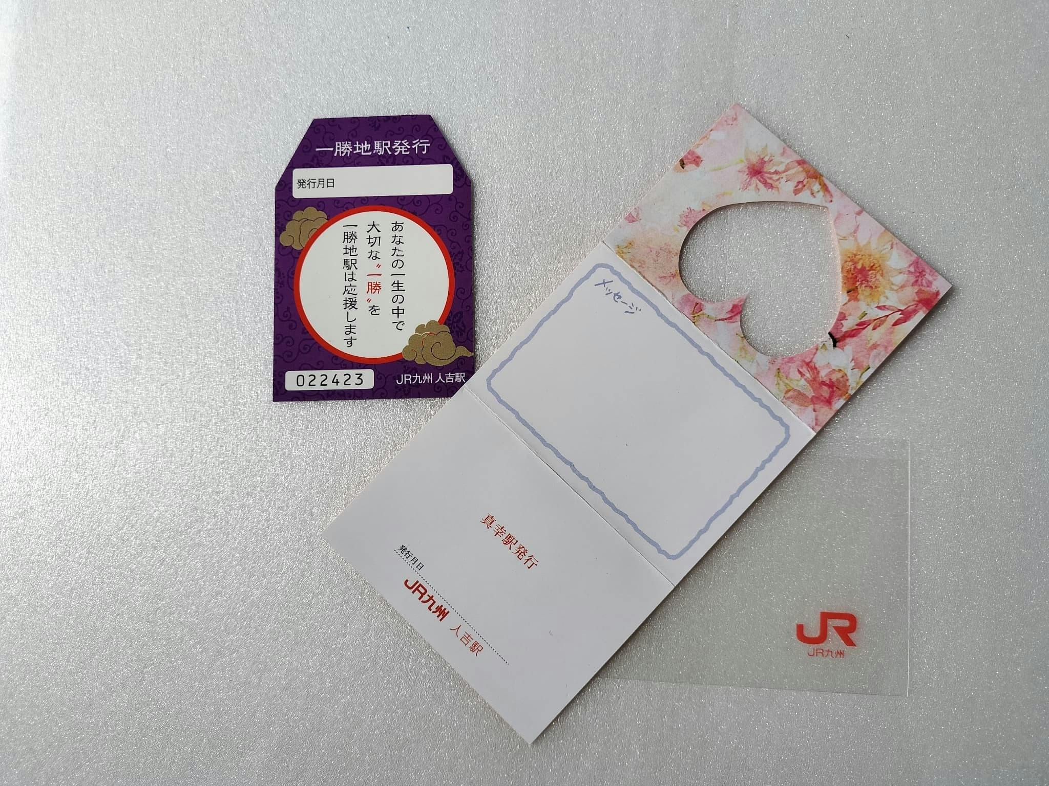 「真幸駅」 と「 一勝地駅」の記念キップ(普通入場券)。