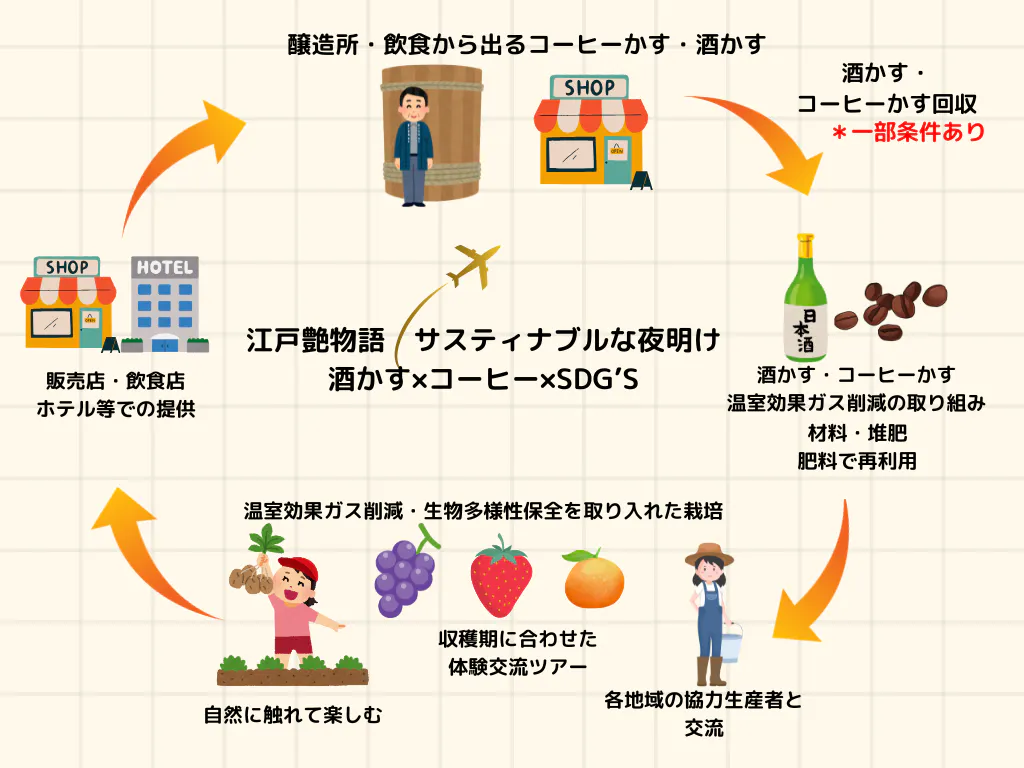 東京・台東区で創業20年を迎えた旅行会社として、私たちはSDGsの理念に基づき、新たな挑戦を始めました。 「旅」と「食」がつなぐ、持続可能な未来――私たちの目指すのは、旅行と食を通じて地球と地域の未来を豊かにすることです。その実現のために、農業や酒粕、コーヒーかすといった地域資源のアップサイクル、さらには心弾むサステナブルな旅行ツアーの実現に取り組んでいます。