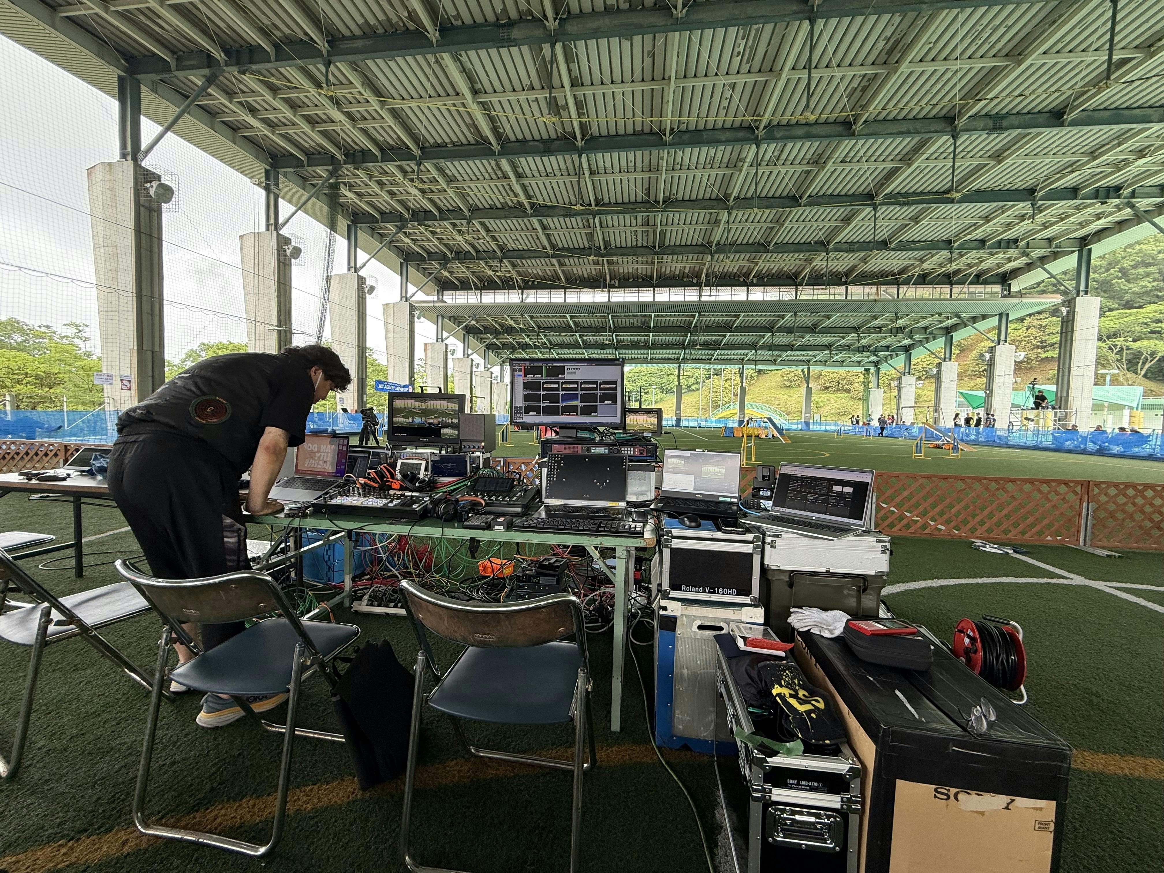 会場は、自然に囲まれた福岡県八女市のグリーンピア八女。スタッフたちは今日、機材のセッティングや配信準備をバッチリ終えましたよ~