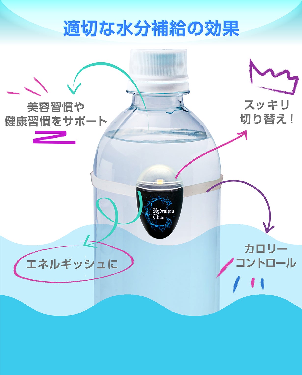ボトルにつけるだけで水分補給を習慣化!あなたに水分補給を促す、ヒューマンセンターテクノロジーを駆使した、今までにない小さなリマインダーです。