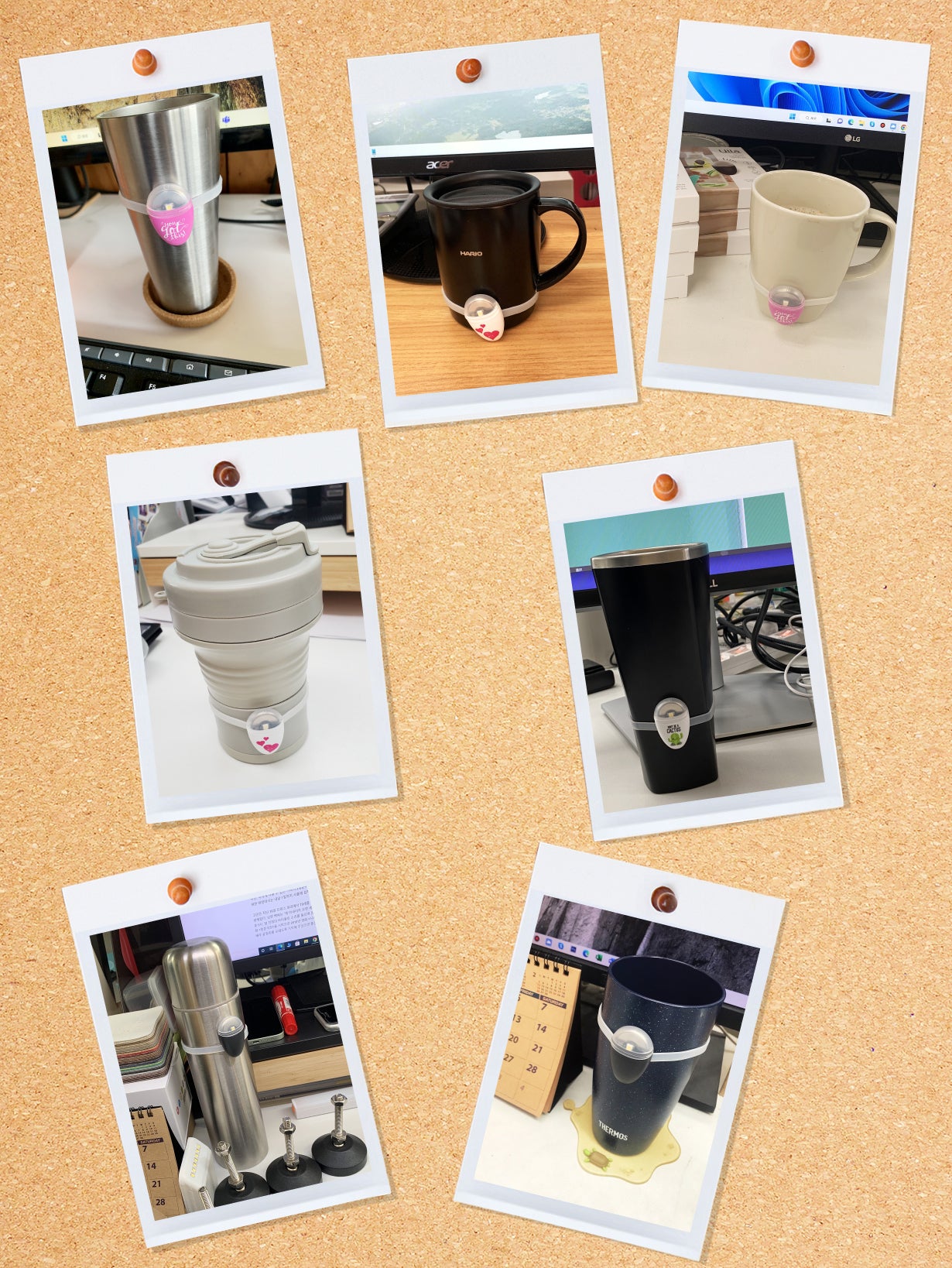 うるおんはコップやペットボトル、水筒に、付属のバンドで取りつけるだけ。