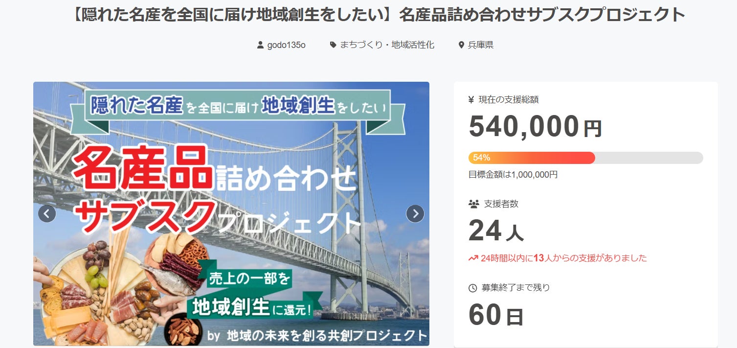 公開初日にして、目標金額の約50%を達成することができました!!ご支援いただいた皆さま、心から感謝申し上げます。目標に向かって2ヶ月間走り続けますので、引き続き応援・シェアをしていただけると嬉しいです!今後とも何卒よろしくお願いいたします!(※画像は公開2日目17:00現在のものです)
