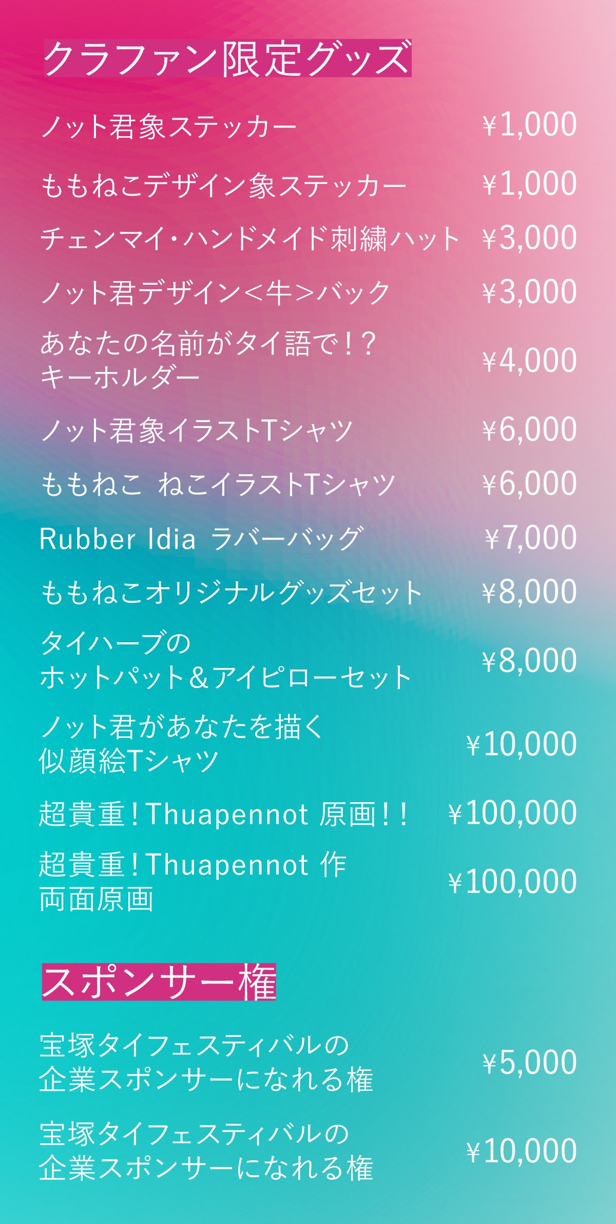 宝塚タイフェスティバルのクラウドファンディングページをご覧いただき、誠にありがとうございます。