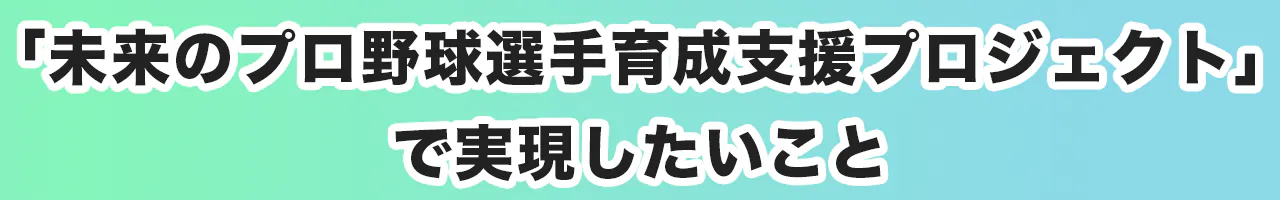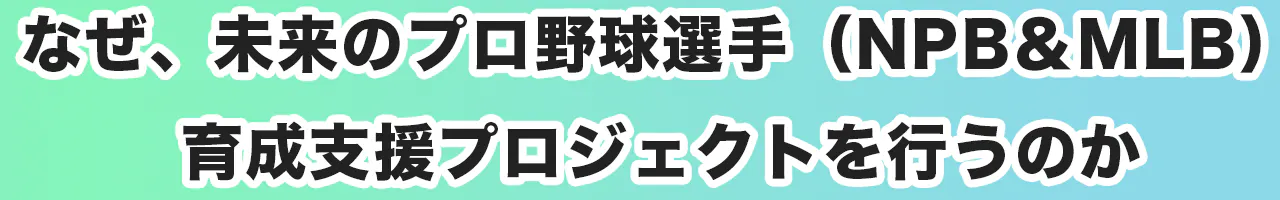 このたび、未来のプロ野球選手(NPB&MLB)育成支援プロジェクトを立ち上げるにあたり、皆様に心からのご挨拶を申し上げます。