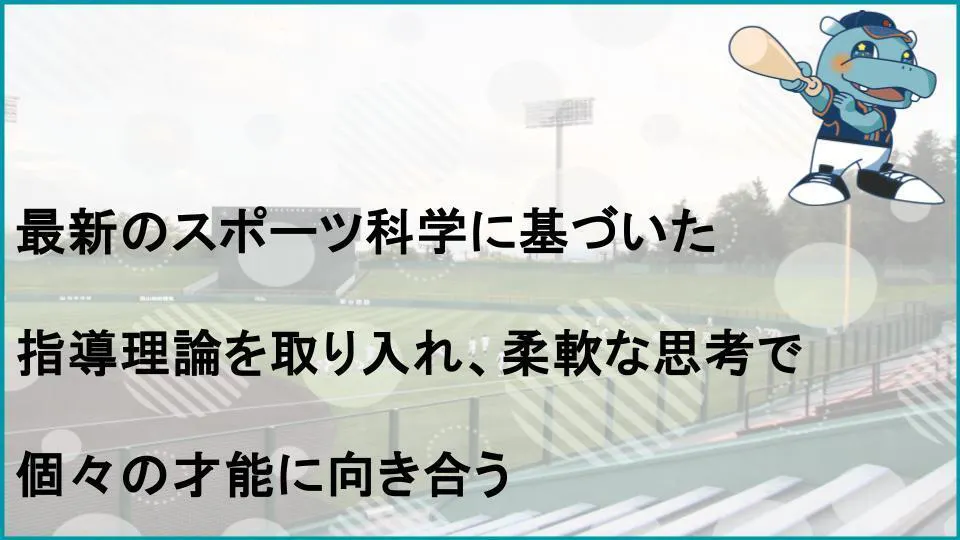 最新のスポーツ科学に基づいた指導理論を取り入れ、柔軟な思考で個々の才能に向き合う。