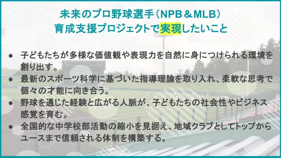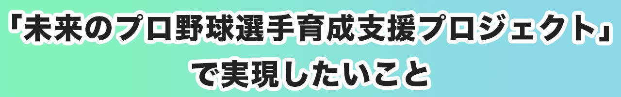 このたび、未来のプロ野球選手(NPB&MLB)育成支援プロジェクトを立ち上げるにあたり、皆様に心からのご挨拶を申し上げます。