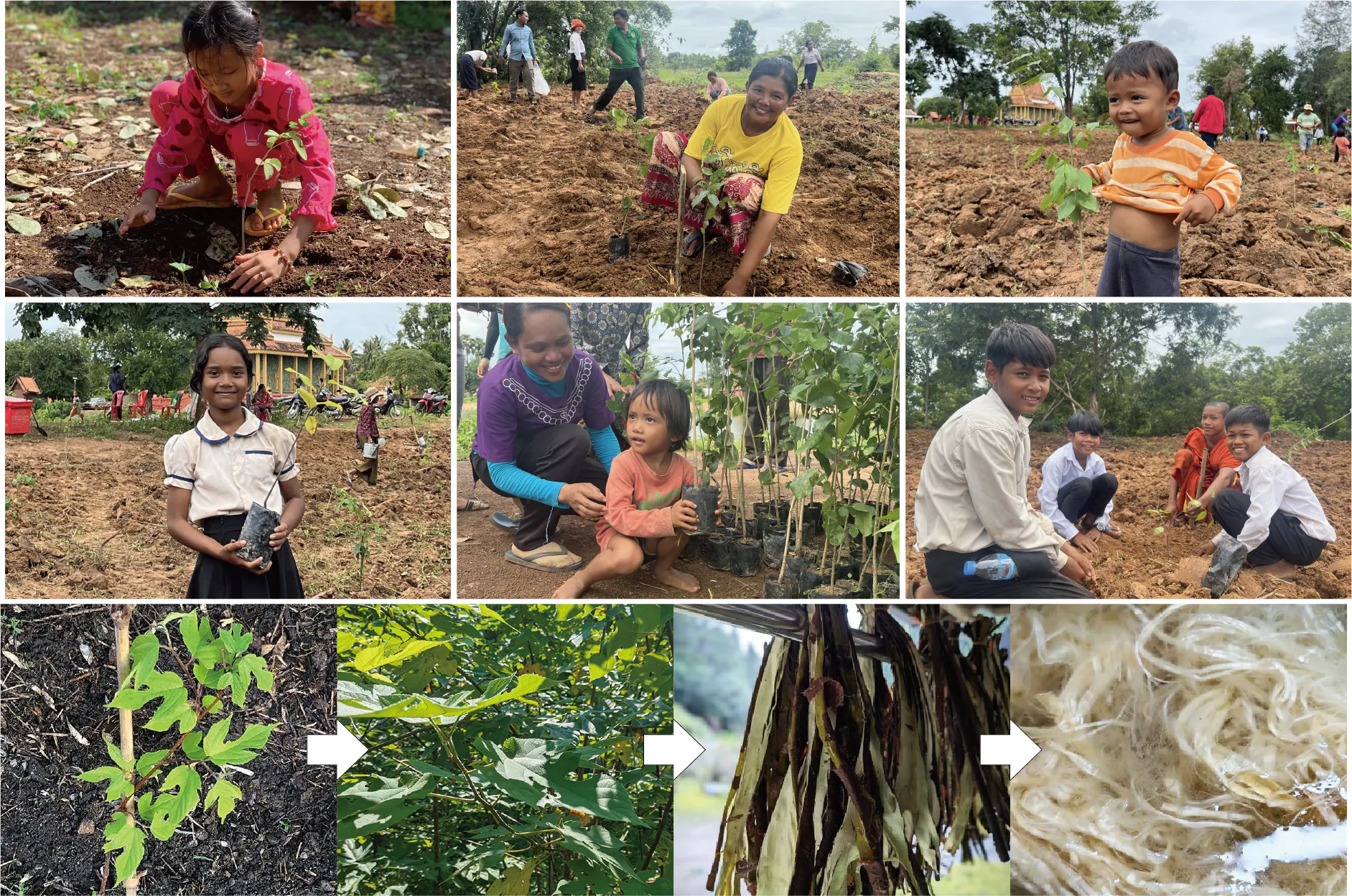 WOCHIは、これまで植林や植林のための苗木代の寄付など4回の活動を行なってまいりました。1回目(2020/7)は、カンボジア・コンポンチャム州へ苗木代100 本分を寄付。2回目(2020/10)は、カンボジア・コンポンチャム州へ苗木代150 本分を寄付。カンボジアの苗木は成長が早く、CO2をストックして大きく成長した時に伐採して家具や建材となります。また、伐採された樹の代金は、現地の方の収入になります。3回目(2022/5)は、和歌山県橋本市に和紙の原料となる楮(こうぞ)の苗木100 本を植林しました。楮も成長が早く、2年ほどで原料となります。4回目(2024/5)は、アンコールワットのあるカンボジア・シェムリアップ州へ苗木代100 本分を寄付。今年は、ラオスの農家さんの収入増につながる果樹の苗木代の寄付を予定しています。