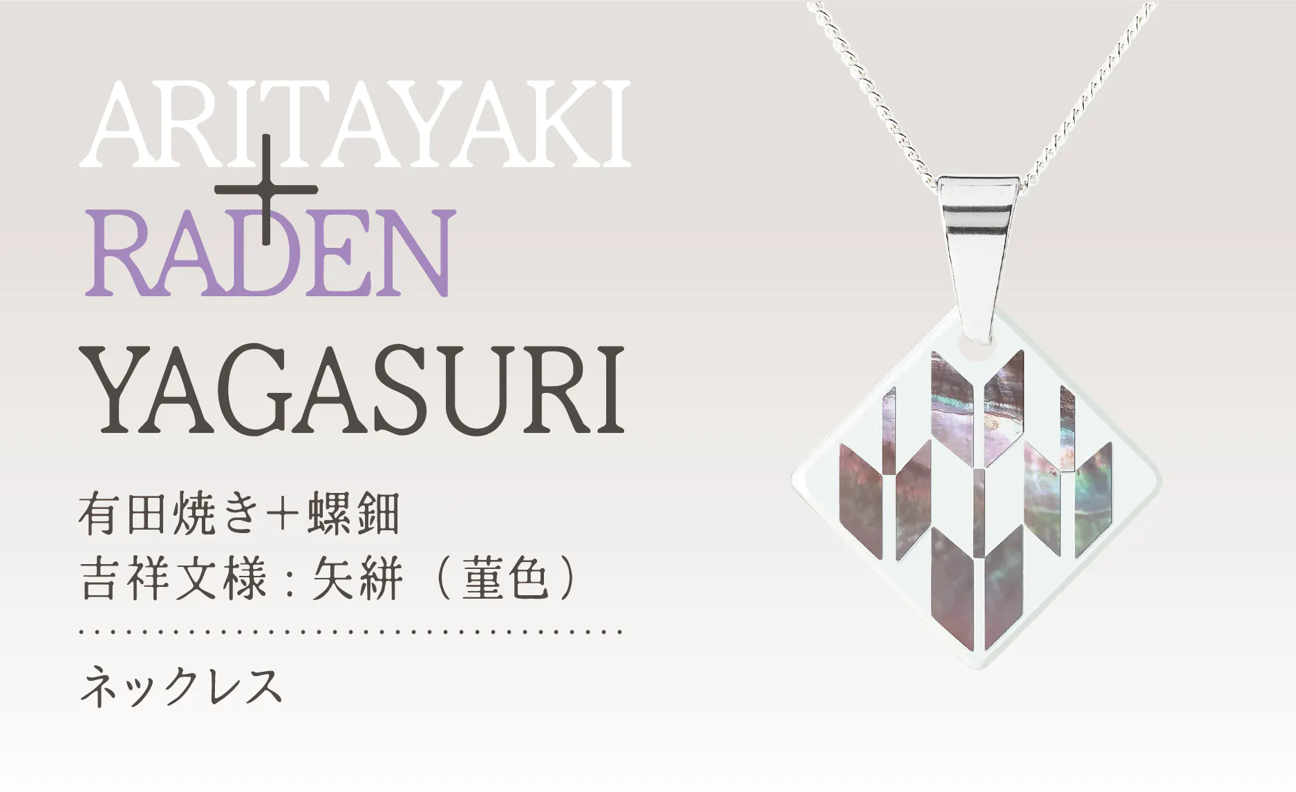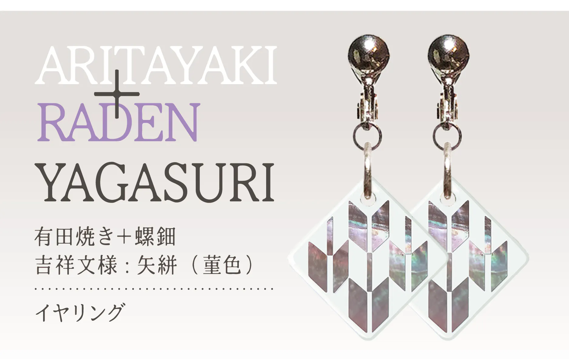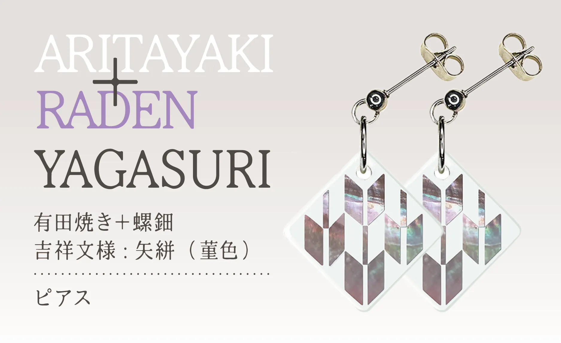 今回、佐賀県の“有田焼”と輪島の蒔絵師による“螺鈿”のコラボレーションの製品をお返しの品とさせていただきます。このコラボレーションは、これまであまり前例がないようです。2種類のデザインをベースにピンブローチ・ネックレス・ピアス・イヤリングをそれぞれご用意しております。