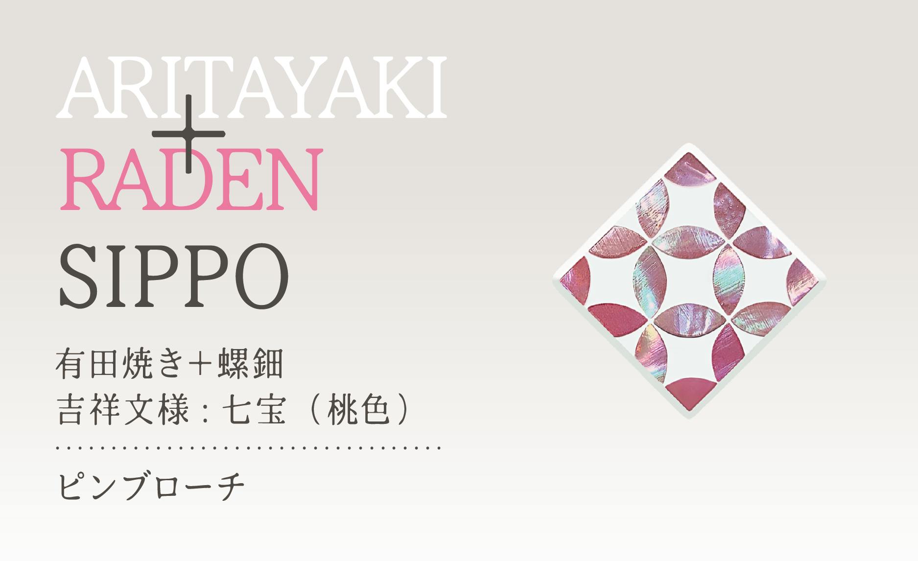 佐賀県の“有田焼”と輪島の蒔絵師による“螺鈿”のコラボレーションの製品をお返しの品とさせていただきます。このコラボレーションは、これまであまり前例がないようです。2種類の吉祥文様のデザインをベースにピンブローチ・ネックレス・ピアス・イヤリングをそれぞれご用意しております。