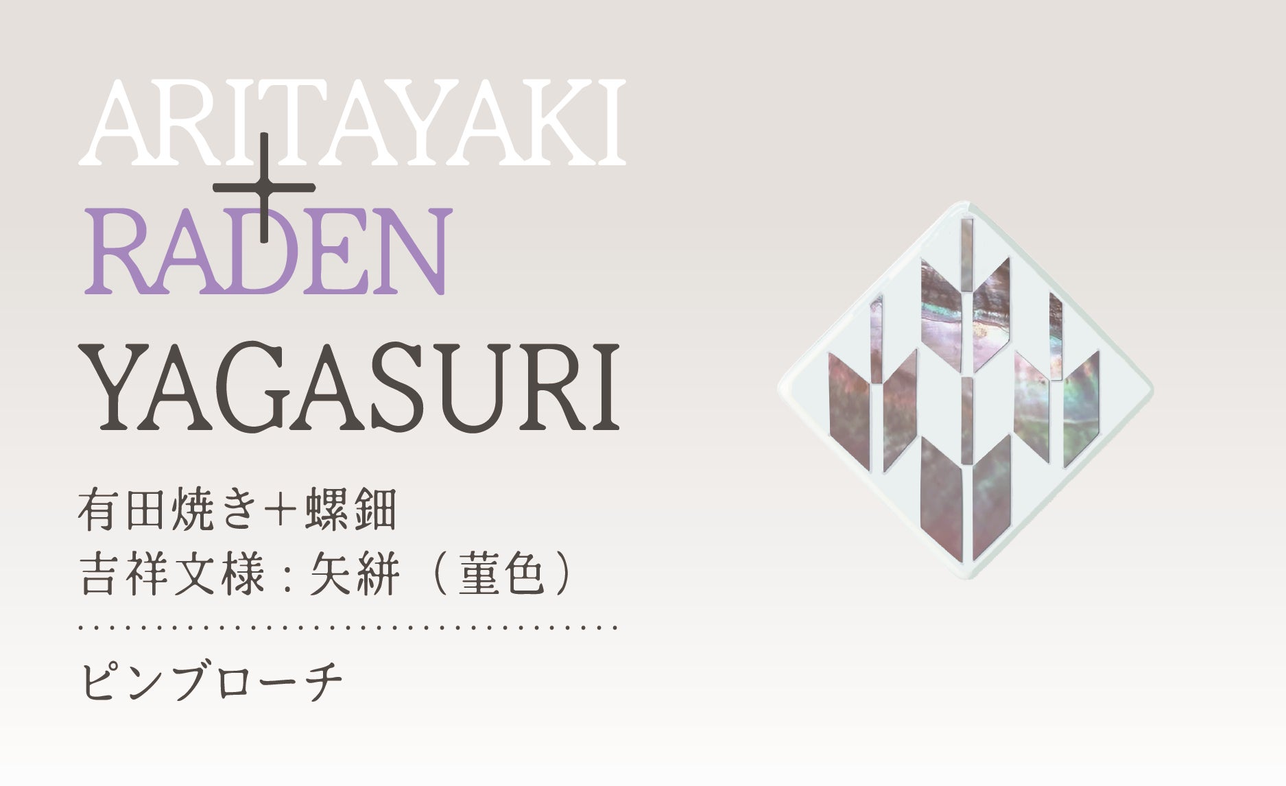 今回、佐賀県の“有田焼”と輪島の蒔絵師による“螺鈿”のコラボレーションの製品をお返しの品とさせていただきます。このコラボレーションは、これまであまり前例がないようです。2種類のデザインをベースにピンブローチ・ネックレス・ピアス・イヤリングをそれぞれご用意しております。