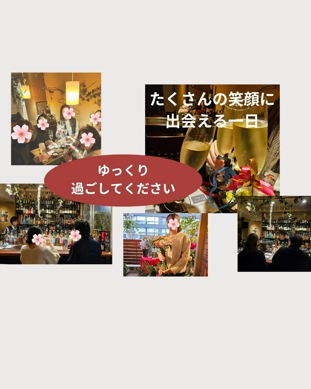 2025/05/01 19:25無事に3日間のイベントが終了しました。ご支援下さった皆様、ありがとうございました。クラファンは残念ながら、目標を達成することができず落ち込んでましたが、ギリギリで段取りをつけてお越しくださったり、皆さんのおかげで当日は賑わう楽しい時間を過ごすことが出来ました。遠方の方やどうしても予定がつかず、ご支援のみいただいた方に当日の装飾のご紹介です。入り口はパステル系のお花で春のお花をイメージしました⬇店内は桜のアーチをくぐって入っていただき、八重桜のあとは、藤棚を作りました。そしてテラスには生花を飾り、皆さんに持って帰っていただきました。お花のお酒のイベント、賑やかなお花見のような店内で、みなさんお話が弾み笑顔溢れ、よく呑み楽しい時間でした!マスターも私もみなさんの笑顔で幸せな時間を過ごさせていただきました。本当にありがとうございました。 もっと見る
