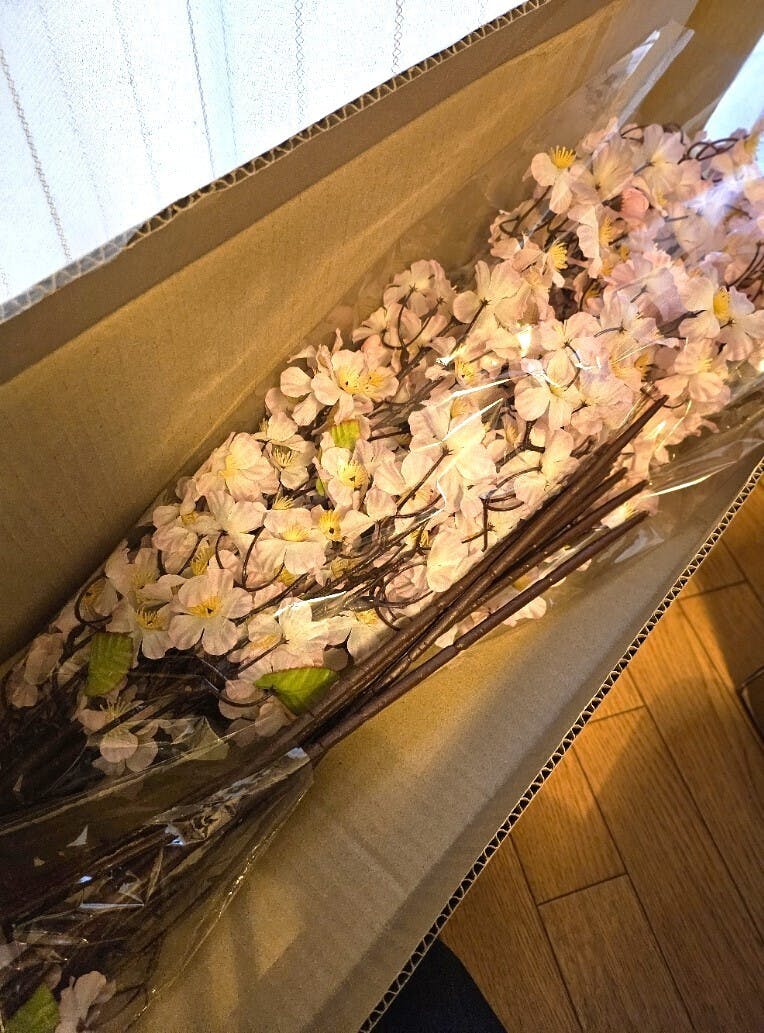 このクラウドファンディングでお花の装飾をするエクラドフルールです。本日は、主に使用するフェイクフラワー(造花)の桜が入荷しました。