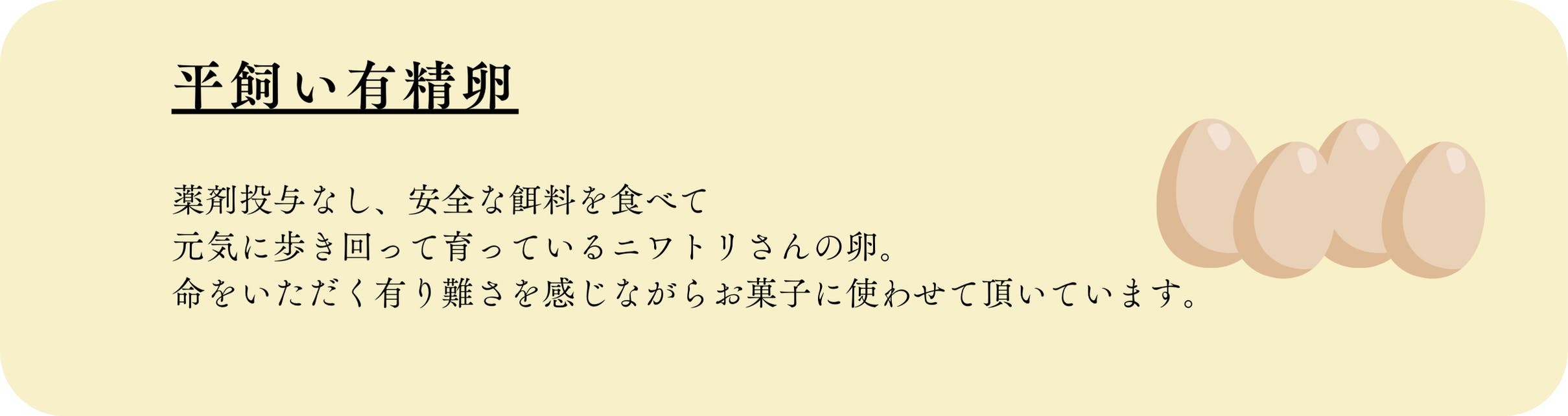 最後に、命をいただいている平飼い有精卵について。