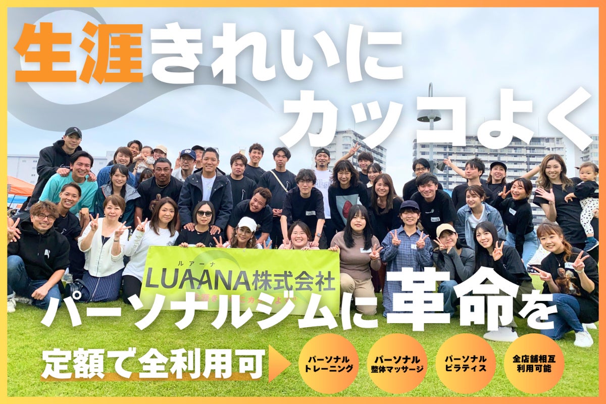 現在東京都と神奈川を中心にパーソナルトレーニングジムを8店舗展開しているLUAANA株式会社です!
