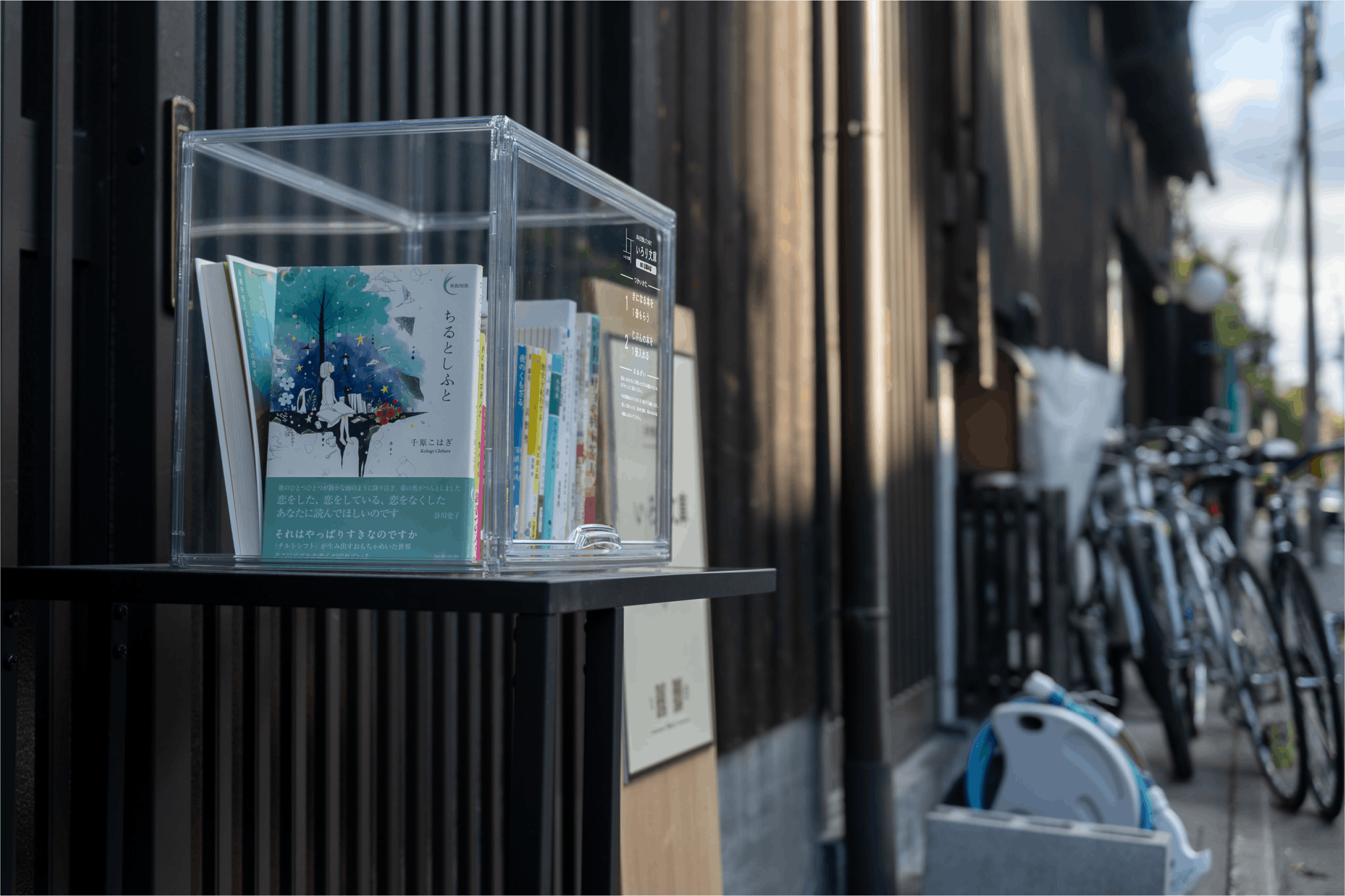 通りに面して小さな本棚を設置し、24時間いつでも誰でも気軽に本を手に取ることができます。