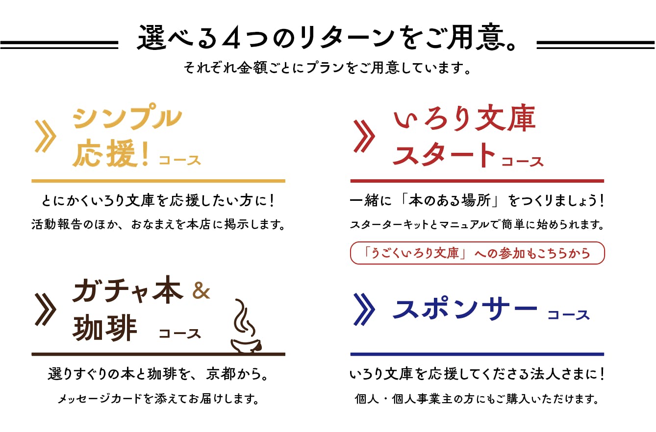 とにかくいろり文庫を応援したい!という方は【シンプル応援コース】を、
