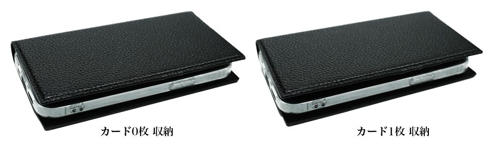 ※上記例は、iPhone12 Proに一般的なシェルケース着用し、カードはプラスチック製を使用しています。
