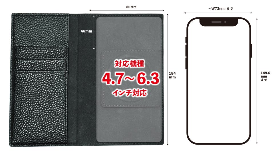 ※4.7〜6.3インチまでの端末サイズに限ります。(インチサイズはiPhone機種を目安に表記しています)
