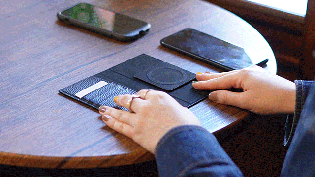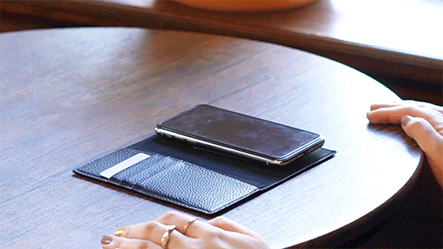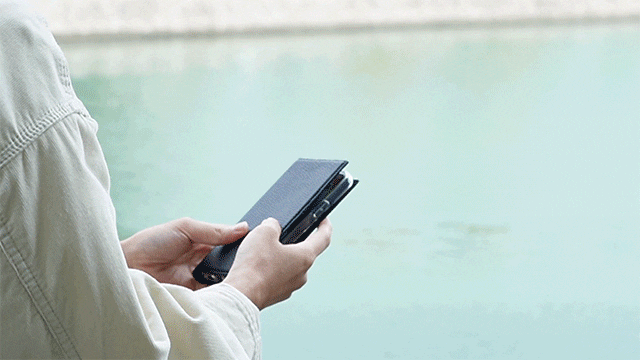 ビジネスシーンに最適。手帳ケースを台座代わりにすれば、余計な背景が映り込むことなく、スマホカメラで名刺を瞬時にスキャンできます。手帳ケースとスマホの着脱が自在だからこそできる、スムーズな名刺撮影です。名刺の管理が煩雑になりがちな展示会などで、とっても重宝する使い方になります。