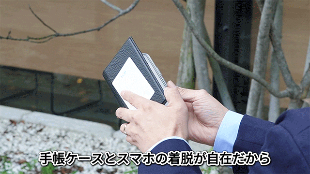 手帳ケースとスマホをすぐに分離できると、名刺スキャンも楽に。