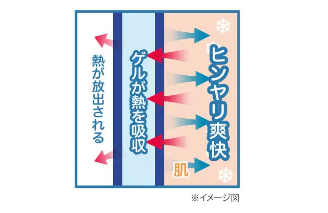 中材のゲルは、体温を吸熱して放熱する性質がある為、ヒンヤリ爽快に感じる仕組みになっています♪