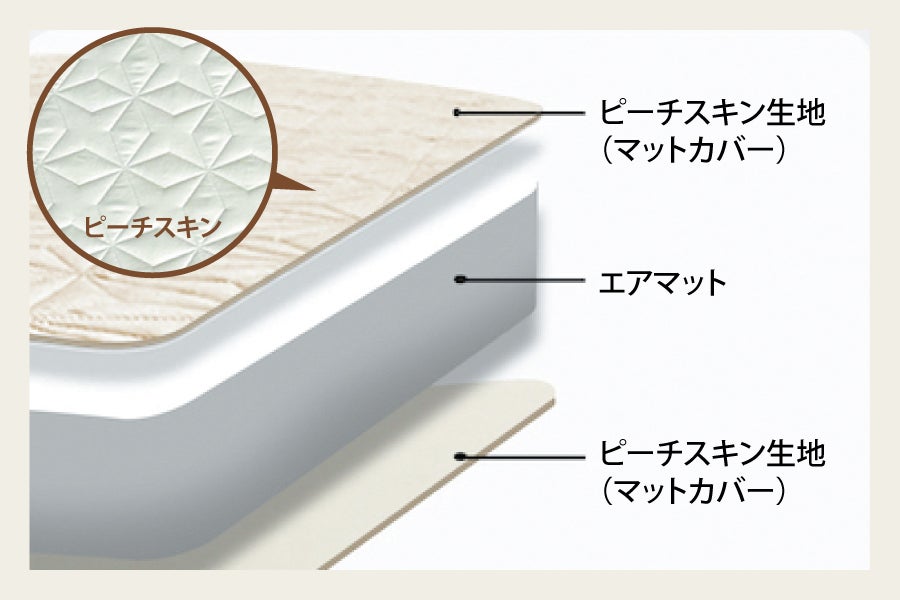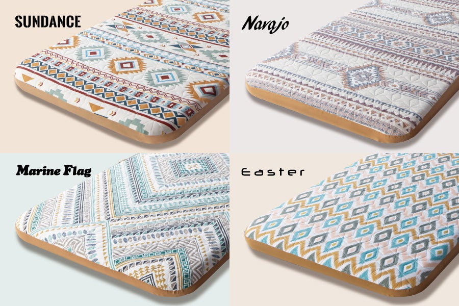 Wahaha camperはピーチスキンのフルカバー付き!肌触りが滑らかで柔らかくしっとりとした風合いが特徴。吸水性と速乾性にも優れているので、車中泊でも普段と変わらない快適で安心な眠り心地を提供します。カバー柄パターンは、心躍るようなワクワクする柄を4種ご用意!いつもの車中泊に、おしゃれなエッセンスを加えて素敵な旅に。