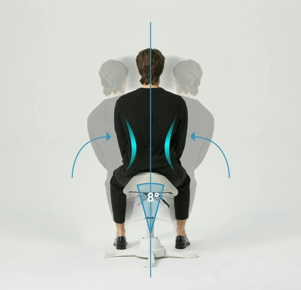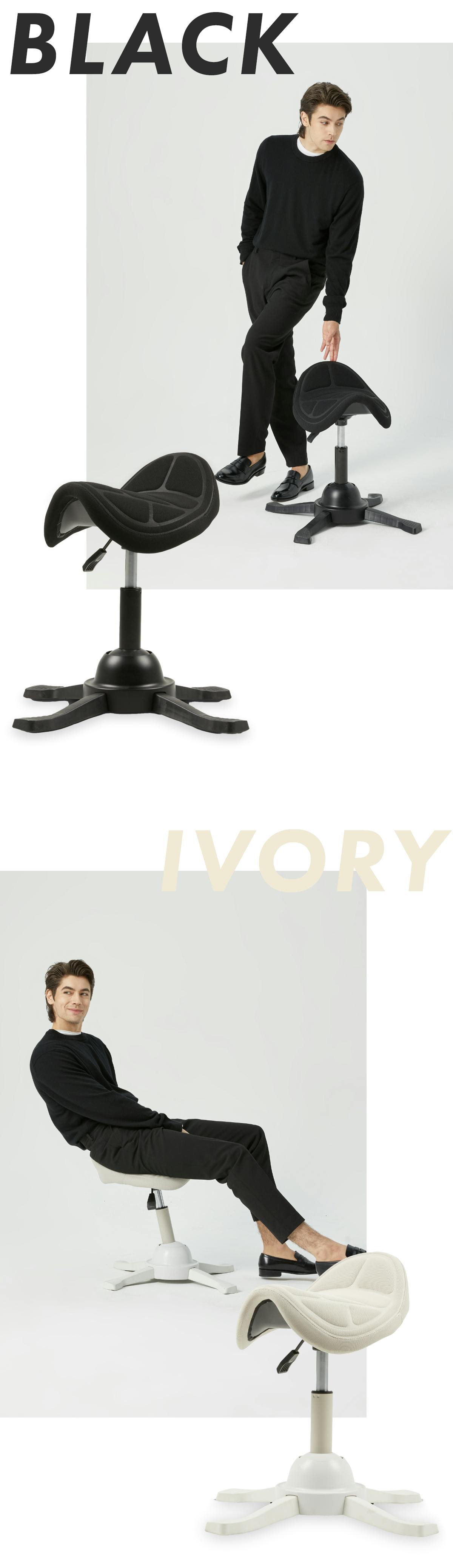 乗馬スタイルをとることで、腰を自然に支え、背骨の理想的なS字カーブをキープ。身体への負担を軽減し、座るだけで無理せず良い姿勢をサポートします。