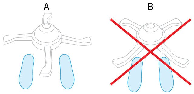 座るときは、足の位置を図Aのように使用することをお勧めします。